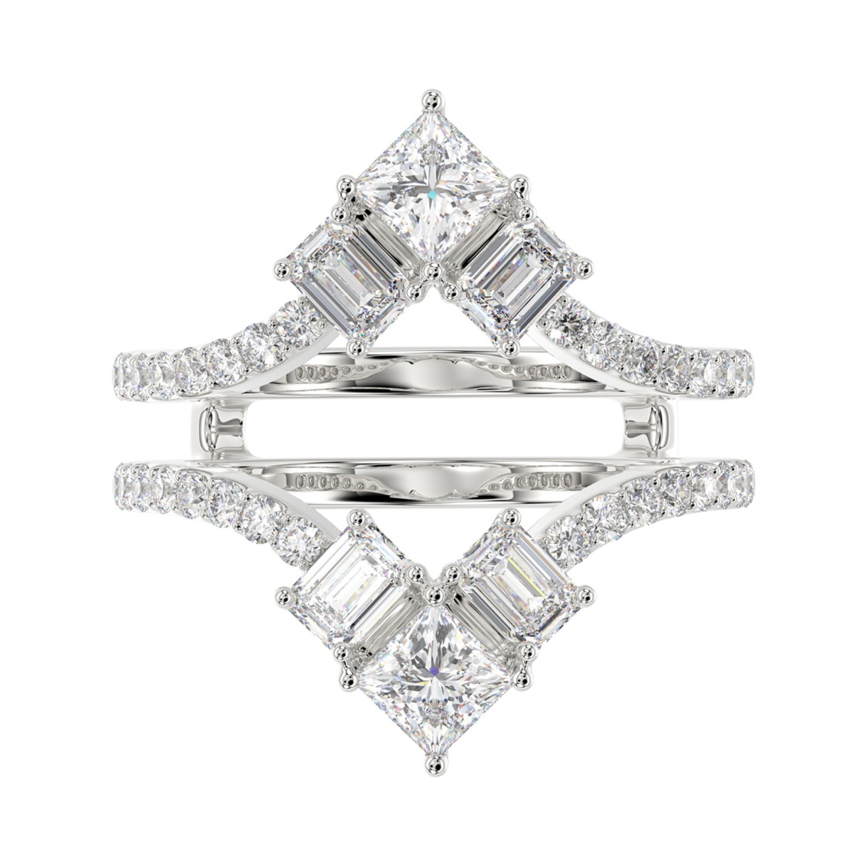 LADIES ENHANCERS RING 1 3/4CT ROUND/PRINCESS/EMERALD DIAMOND 14K WHITE GOLD