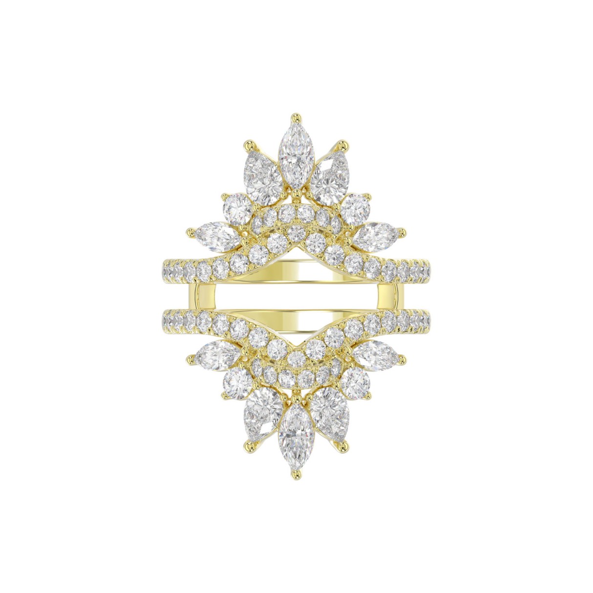 LADIES ENHANCERS RING 2 1/4CT ROUND/PEAR/MARQUISE DIAMOND 14K YELLOW GOLD