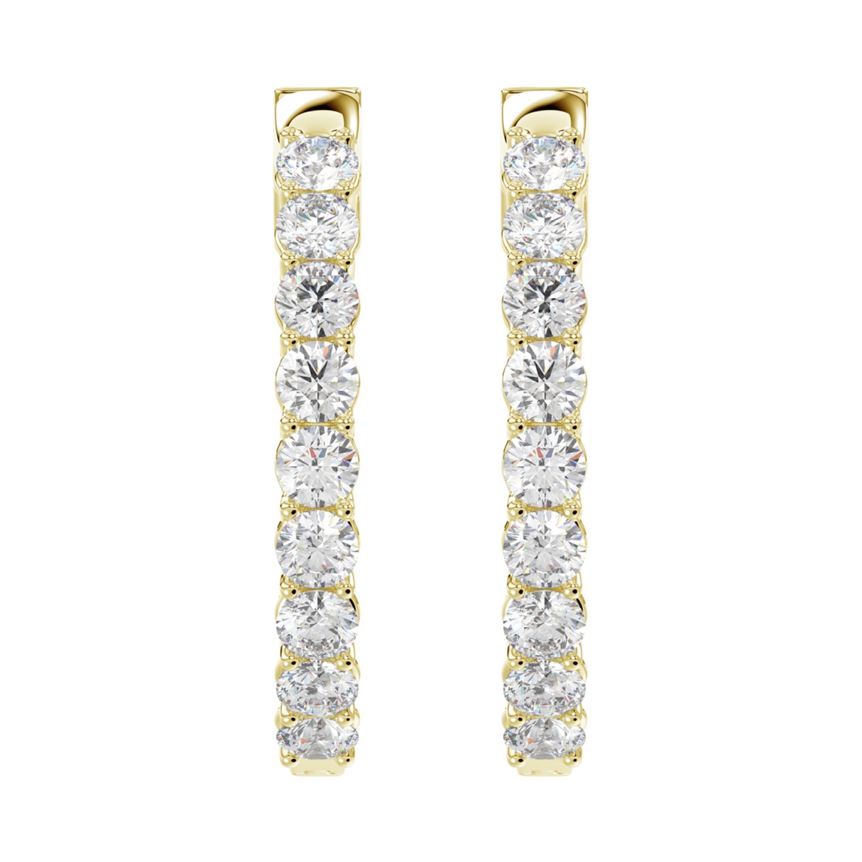 LADIES HOOP EARRINGS 3CT ROUND DIAMOND 14K YELLOW GOLD