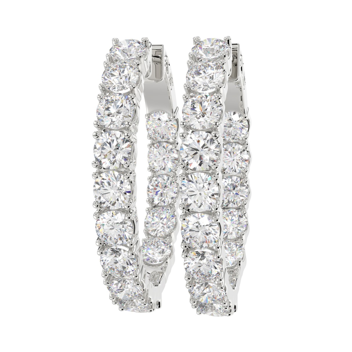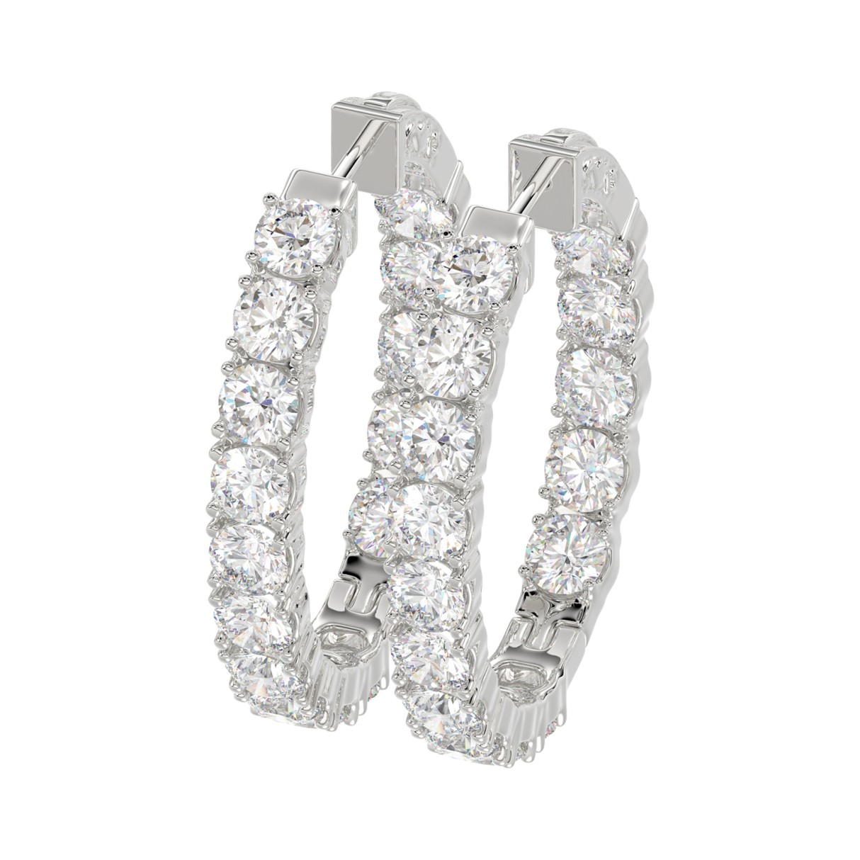 LADIES HOOP EARRINGS 7CT ROUND DIAMOND 14K WHITE GOLD