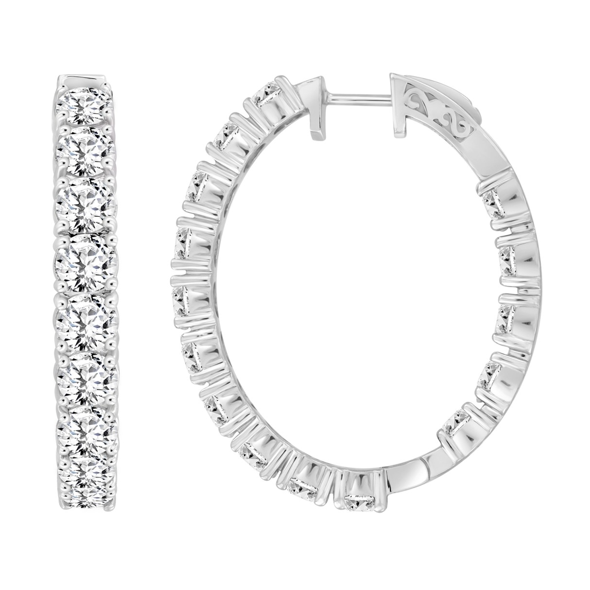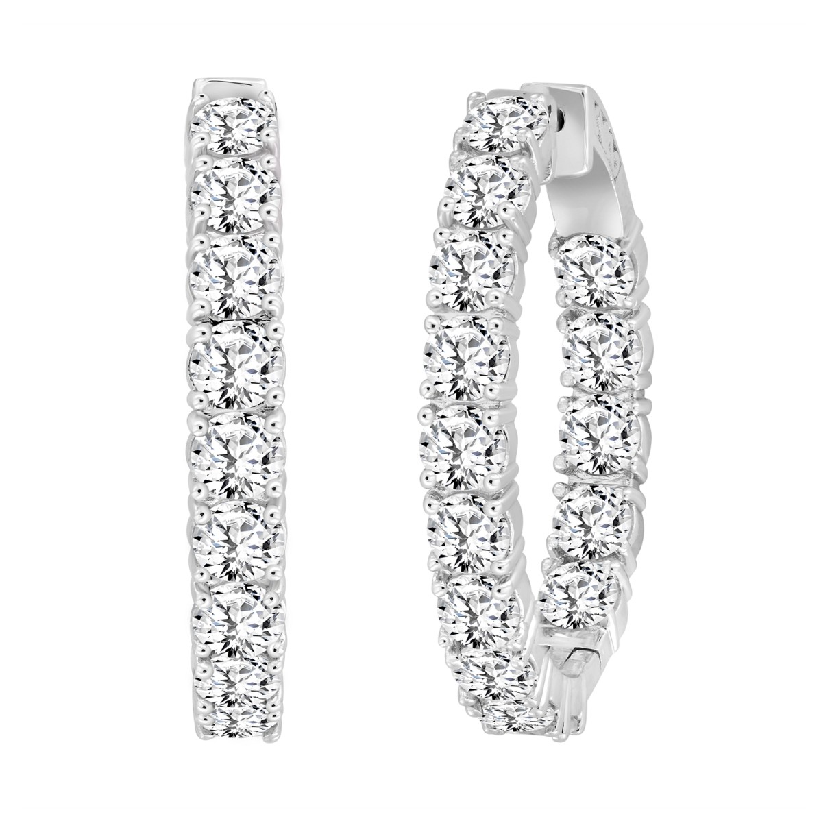 LADIES HOOP EARRINGS 9CT ROUND DIAMOND 14K WHITE GOLD