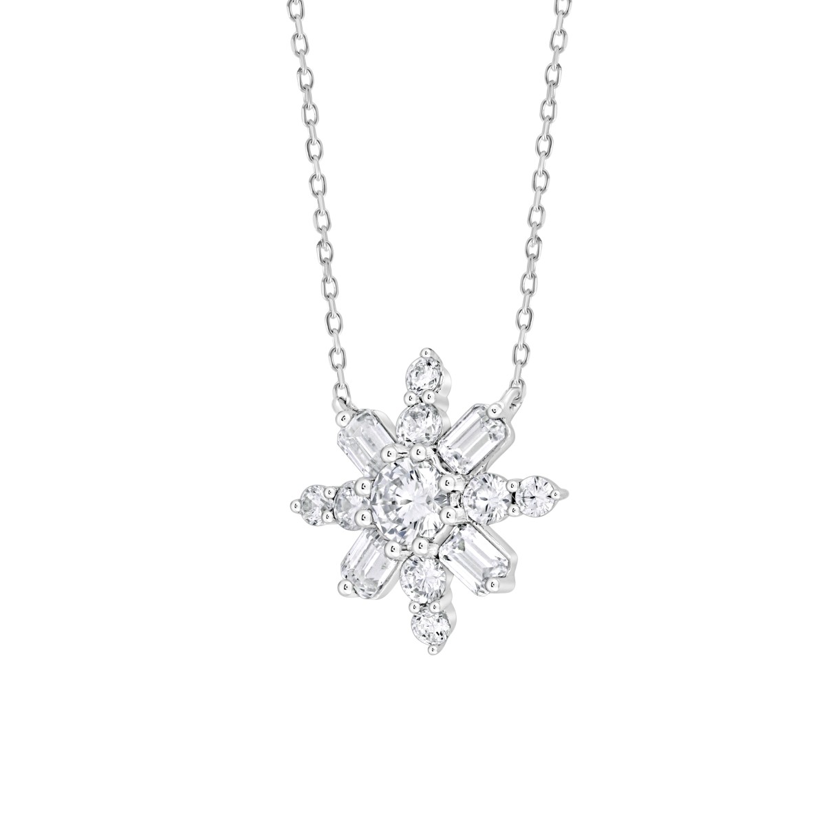 LADIES PENDANT 1 1/2CT ROUND/EMERALD DIAMOND 14K WHITE GOLD WITH CHAIN