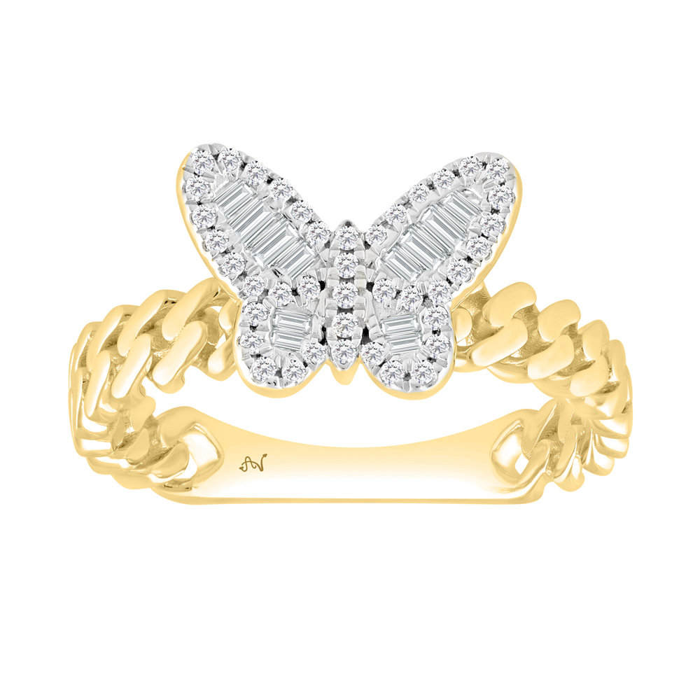 LADIES RING 0.25CT ROUND/BAGUETTE DIAMOND 14K YELLOW GOLD