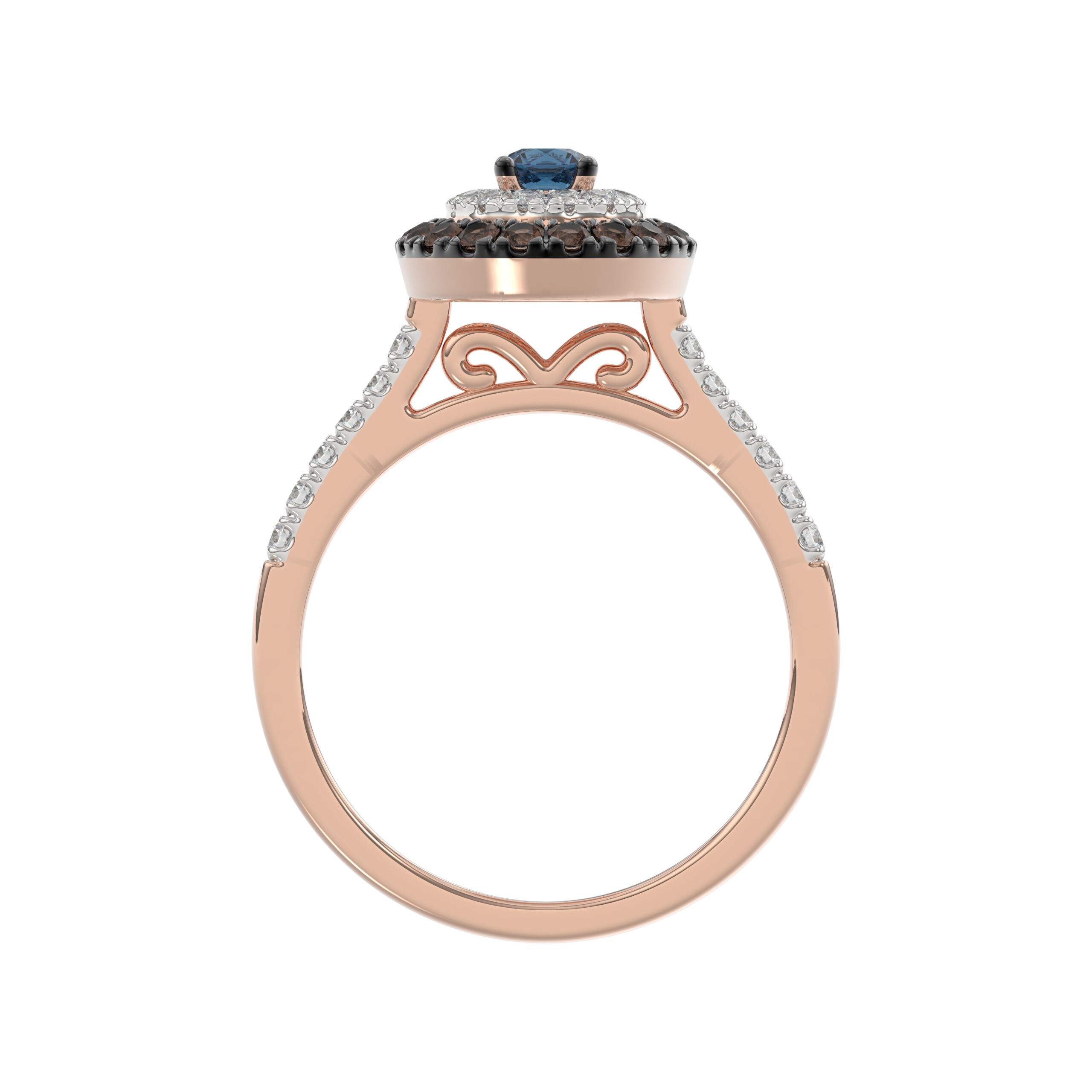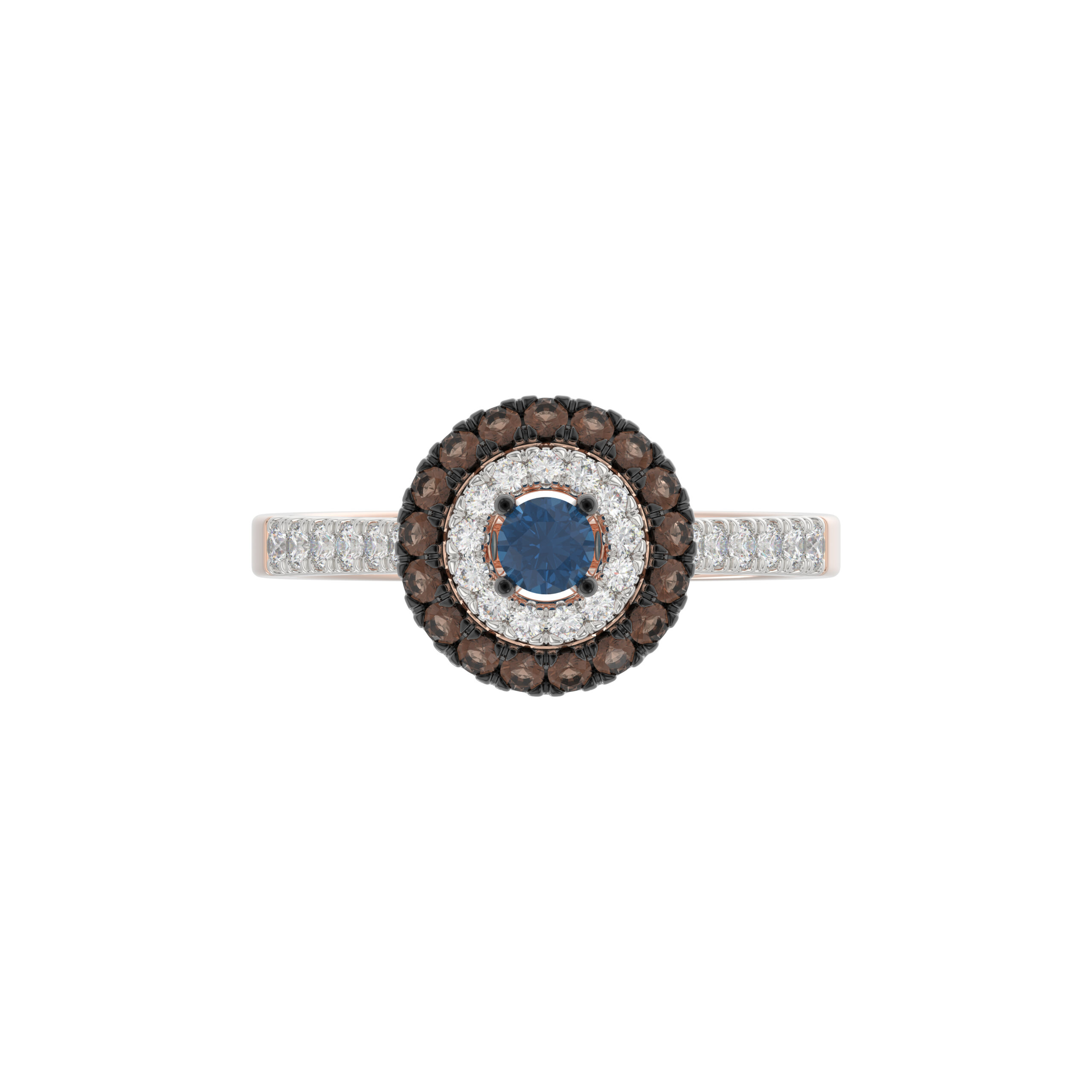 LADIES RING 0.55CT ROUND/ROUND BLUE/DARK BROWN DIAMOND 14K ROSE GOLD