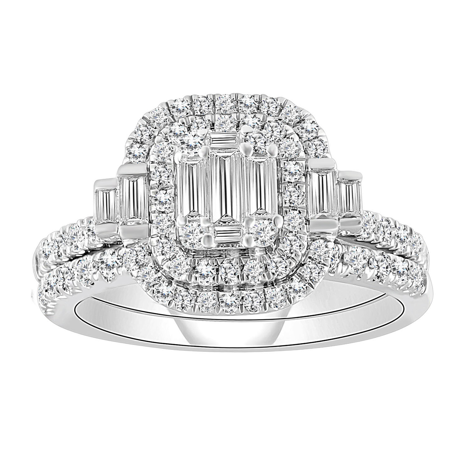 LADIES RING 1.00CT ROUND/BAGUETTE DIAMOND 14K WHITE GOLD