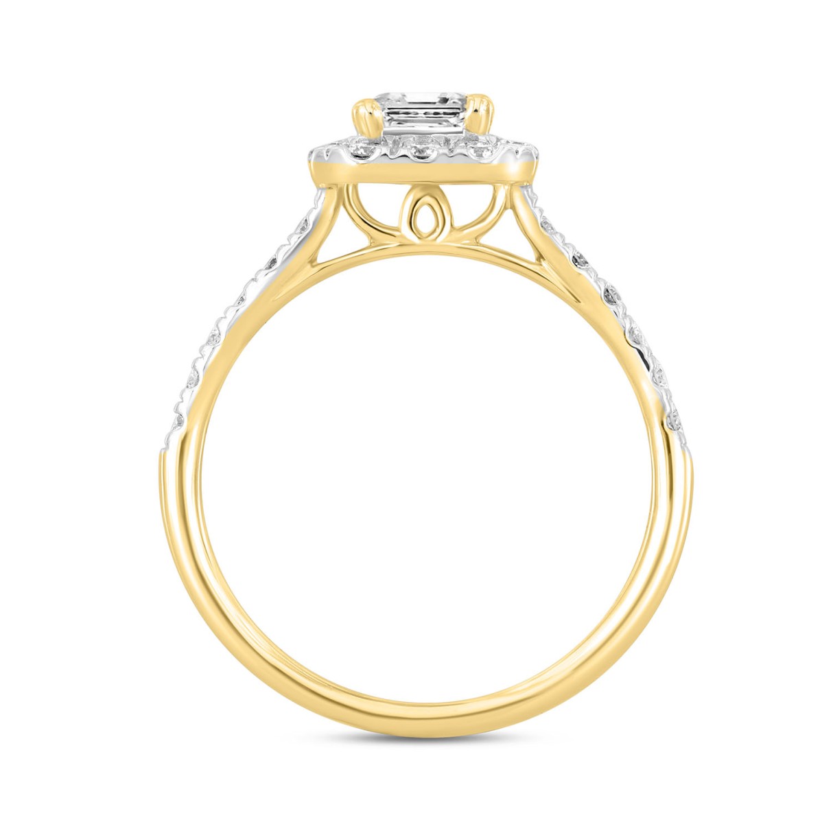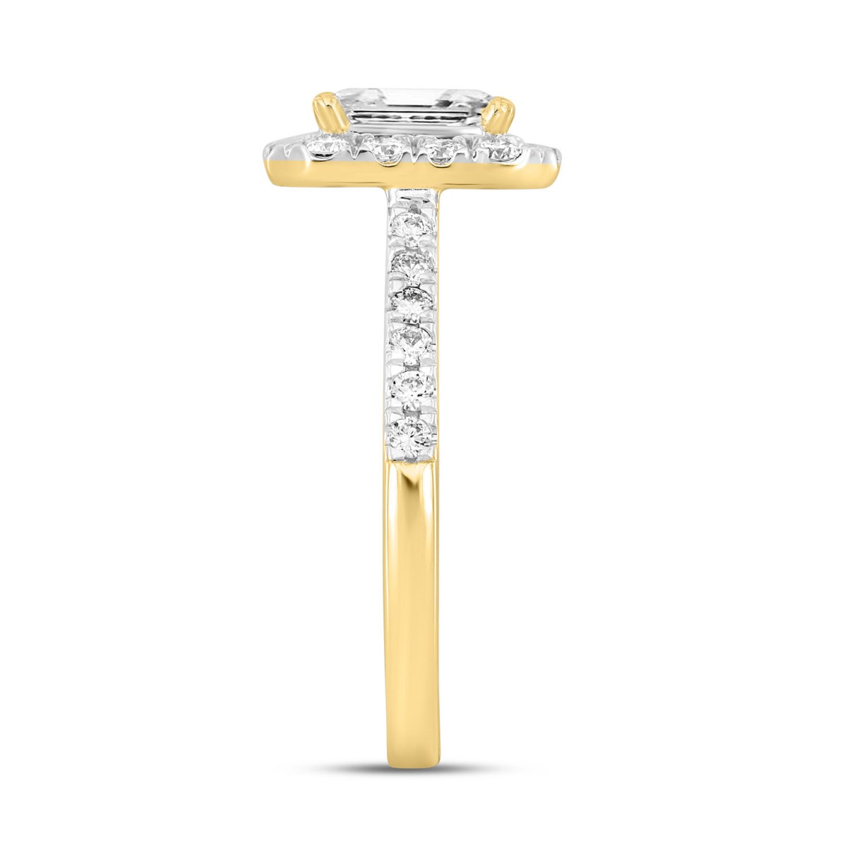 LADIES RING 1 1/2CT ROUND/EMERALD DIAMOND 14K YELLOW GOLD (CENTER STONE EMERALD DIAMOND 1CT)