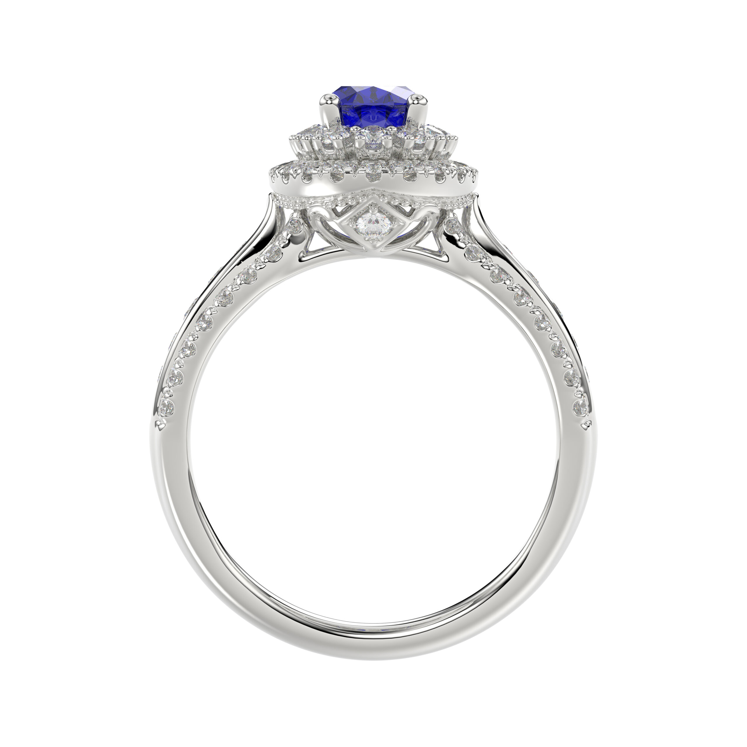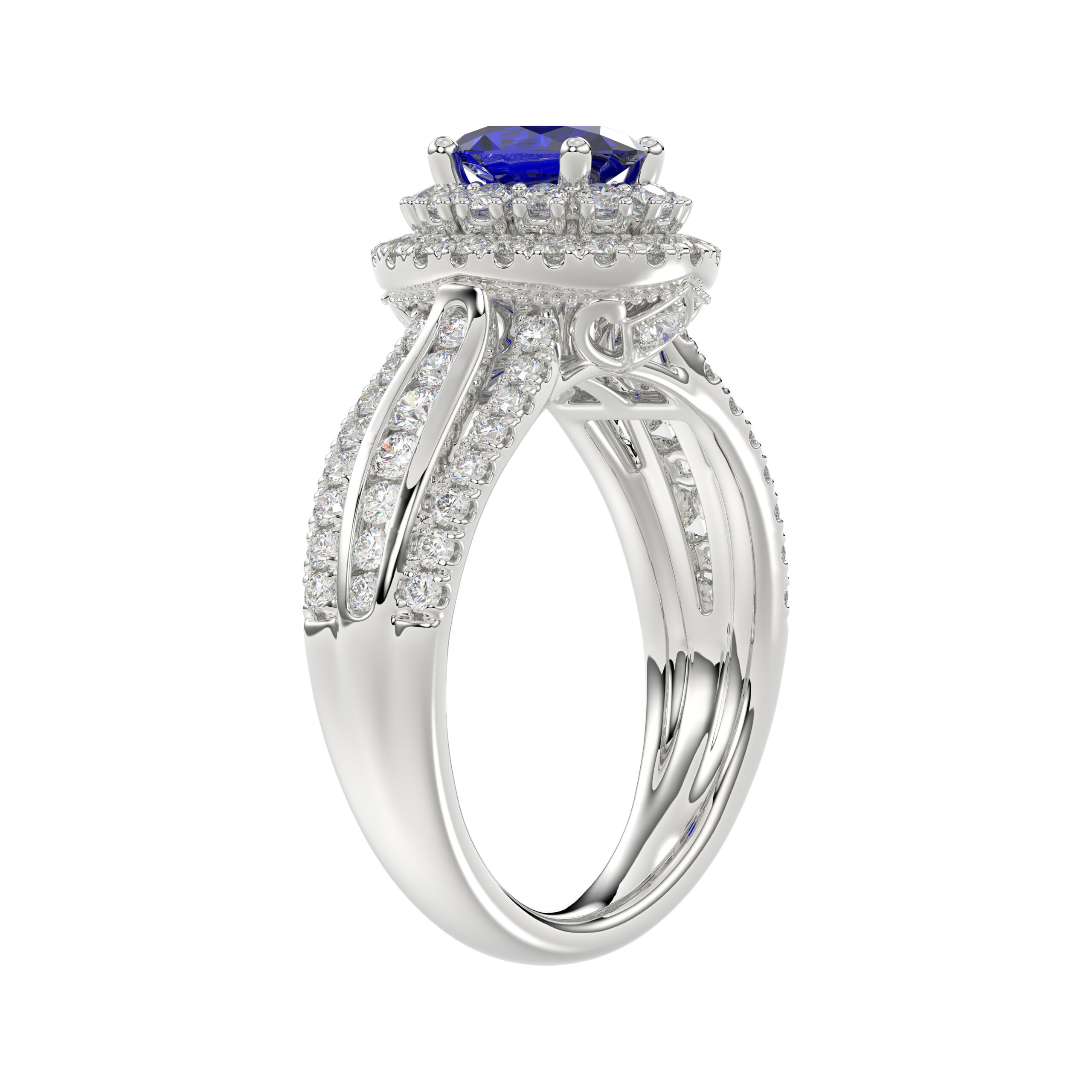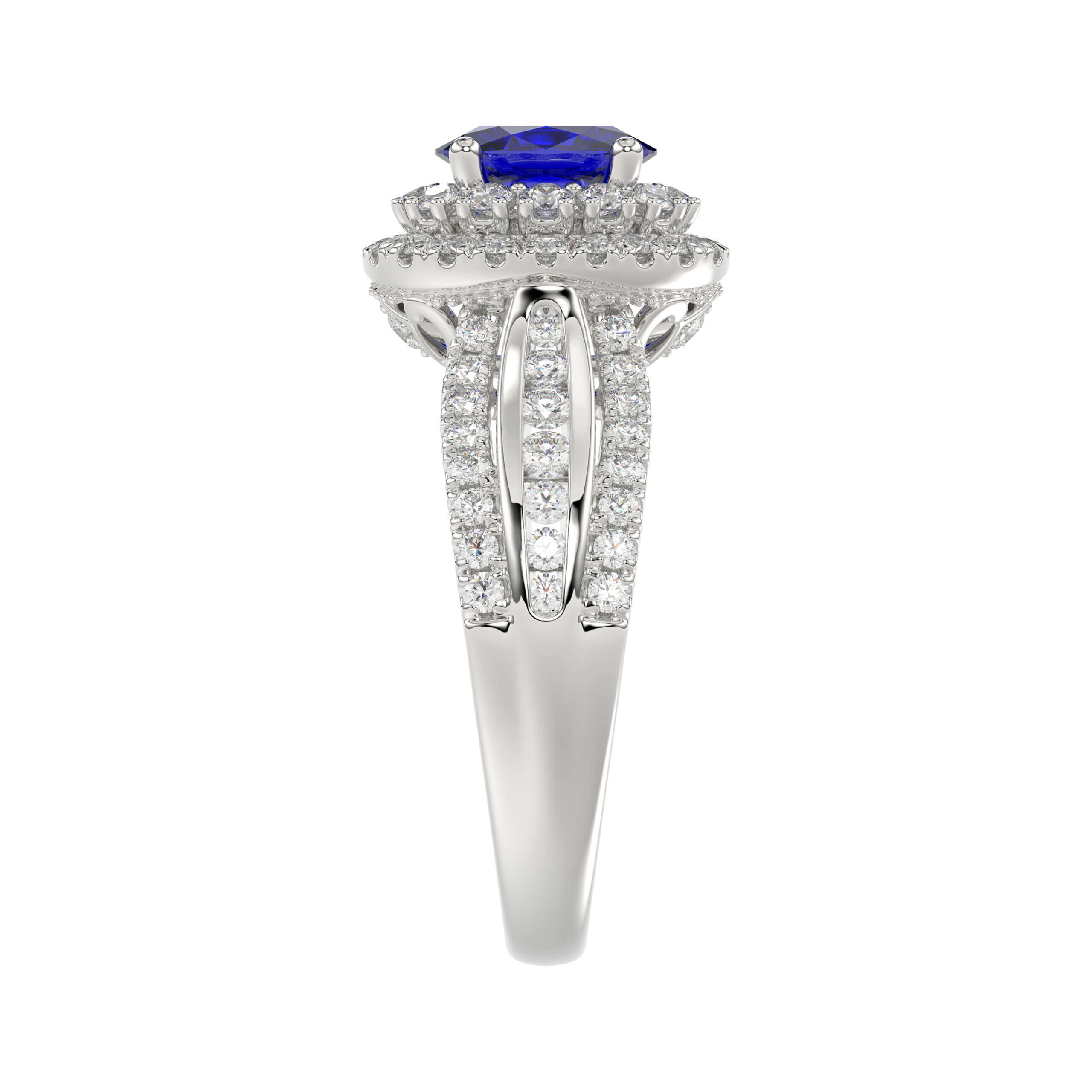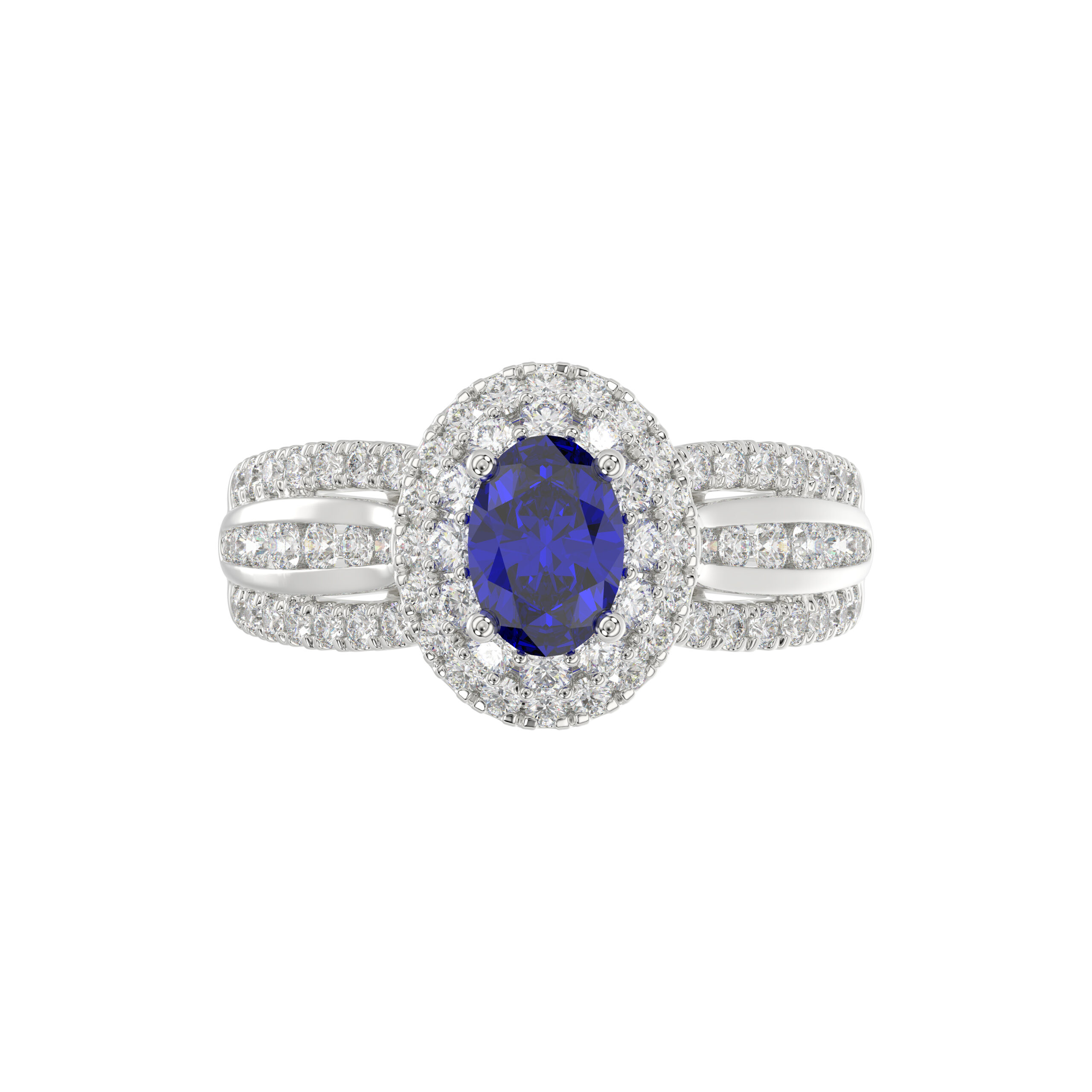 LADIES RING 1.65CT ROUND/BLUE SAPPHIRE OVAL DIAMOND 14K WHITE GOLD (CENTER STONE 0.94CT BLUE SAPPHIRE OVAL DIAMOND)