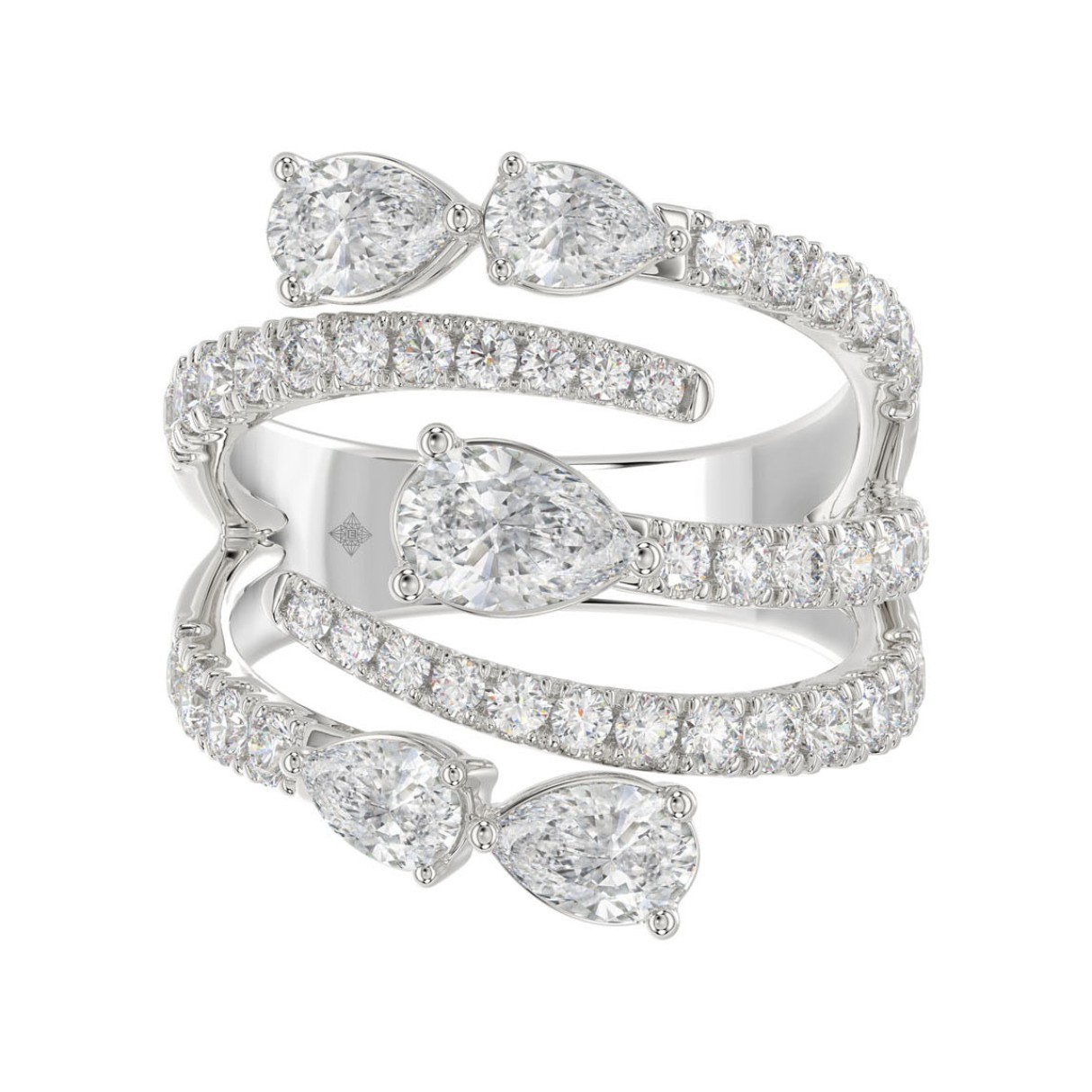LADIES RING 2 1/2CT ROUND/PEAR DIAMOND 14K WHITE GOLD