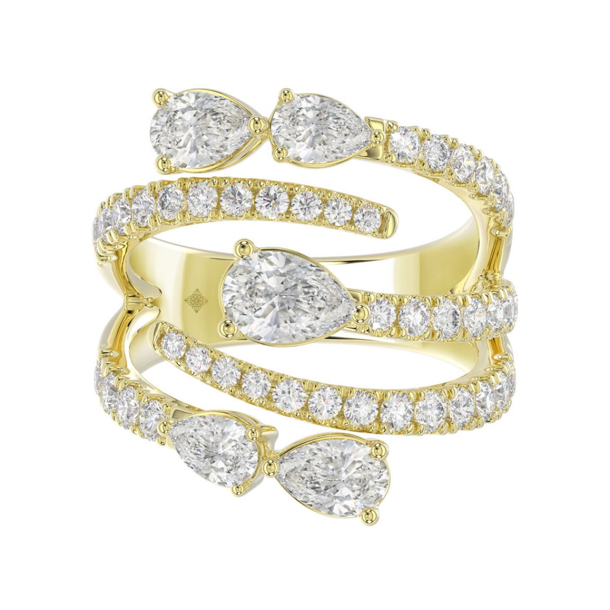 LADIES RING 2 1/2CT ROUND/PEAR DIAMOND 14K YELLOW GOLD