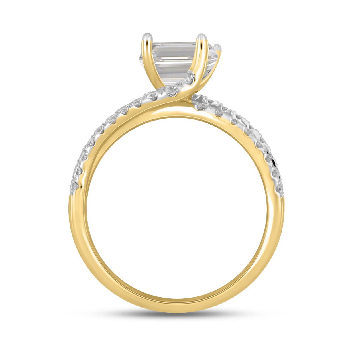 LADIES RING 2CT ROUND/EMERALD DIAMOND 14K YELLOW GOLD (CENTER STONE EMERALD DIAMOND 1 1/2CT )