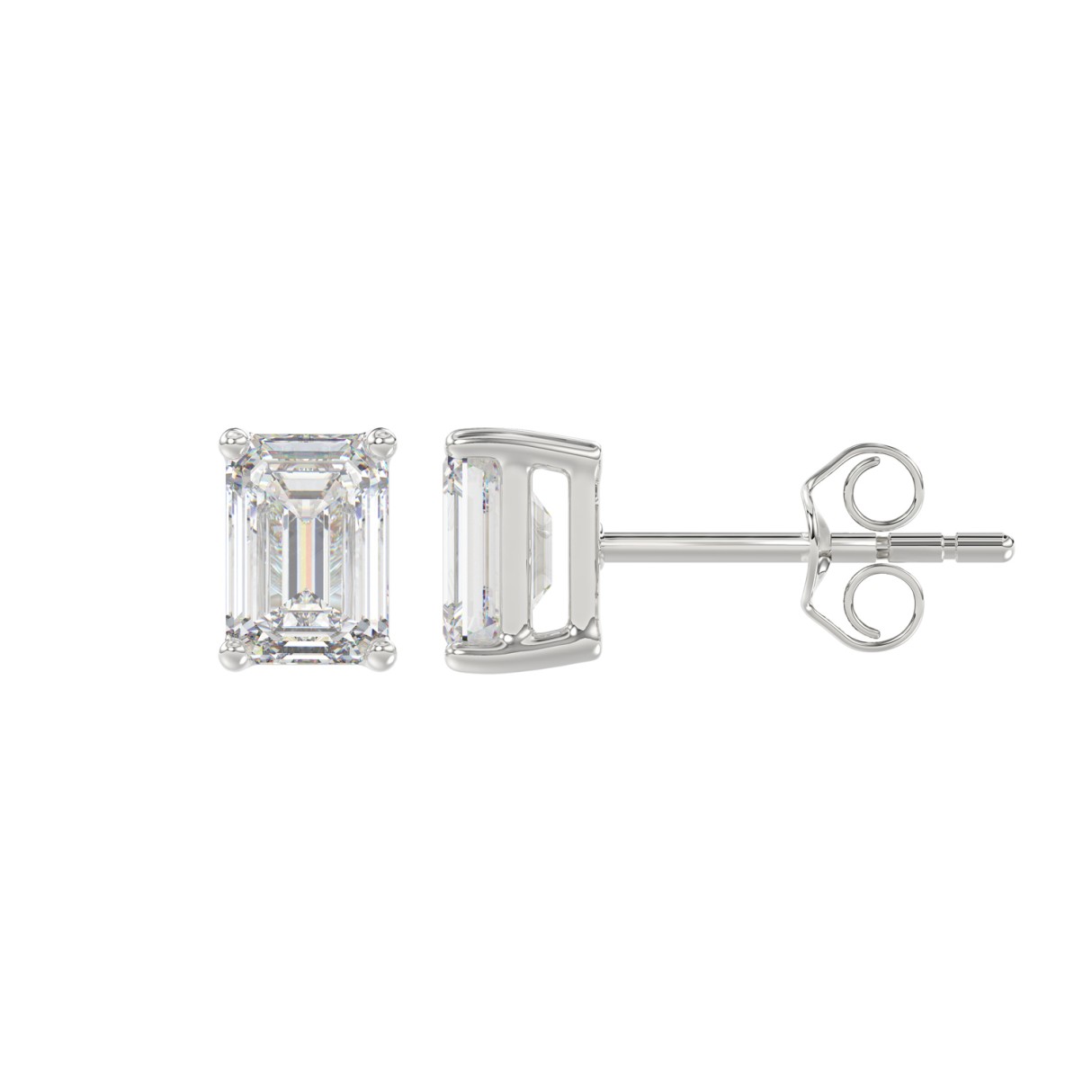 LADIES SOLITAIRE EARRINGS 1 1/2CT EMERALD DIAMOND 14K WHITE GOLD