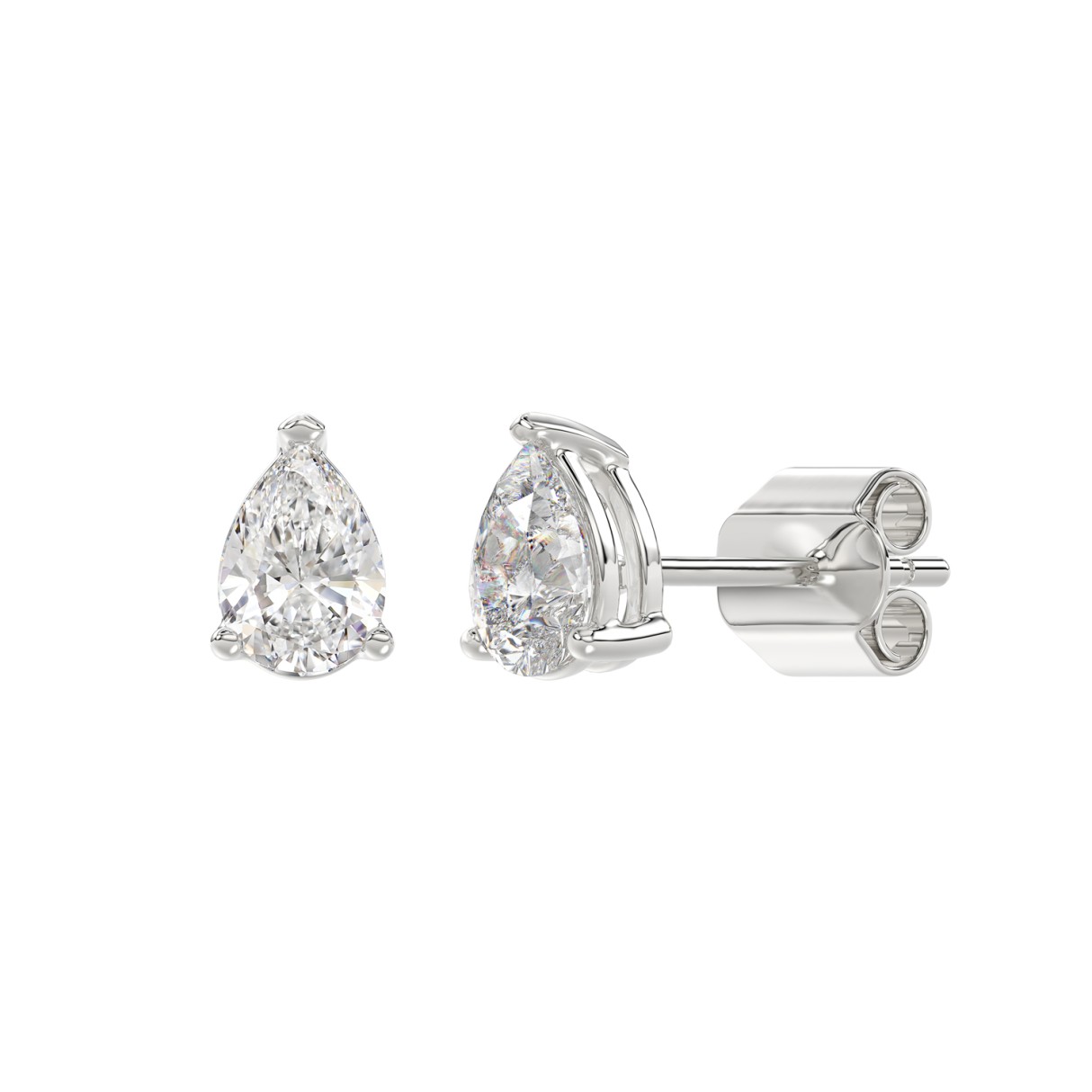 LADIES SOLITAIRE EARRINGS 1 1/2CT PEAR DIAMOND 14K WHITE GOLD