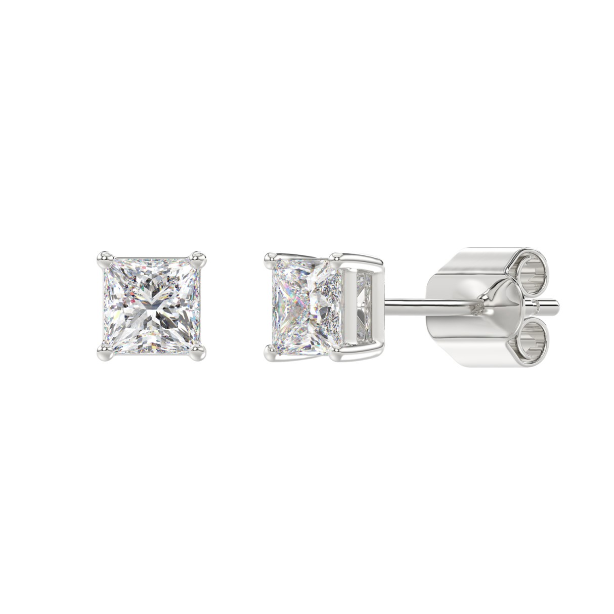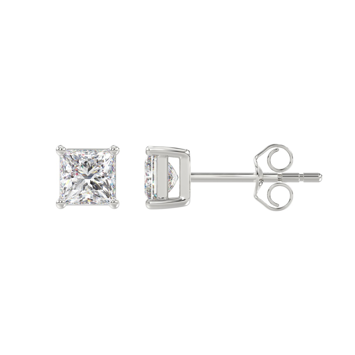 LADIES SOLITAIRE EARRINGS 1 1/2CT PRINCESS DIAMOND 14K WHITE GOLD (CENTER STONE PRINCESS DIAMOND 3/4CT)