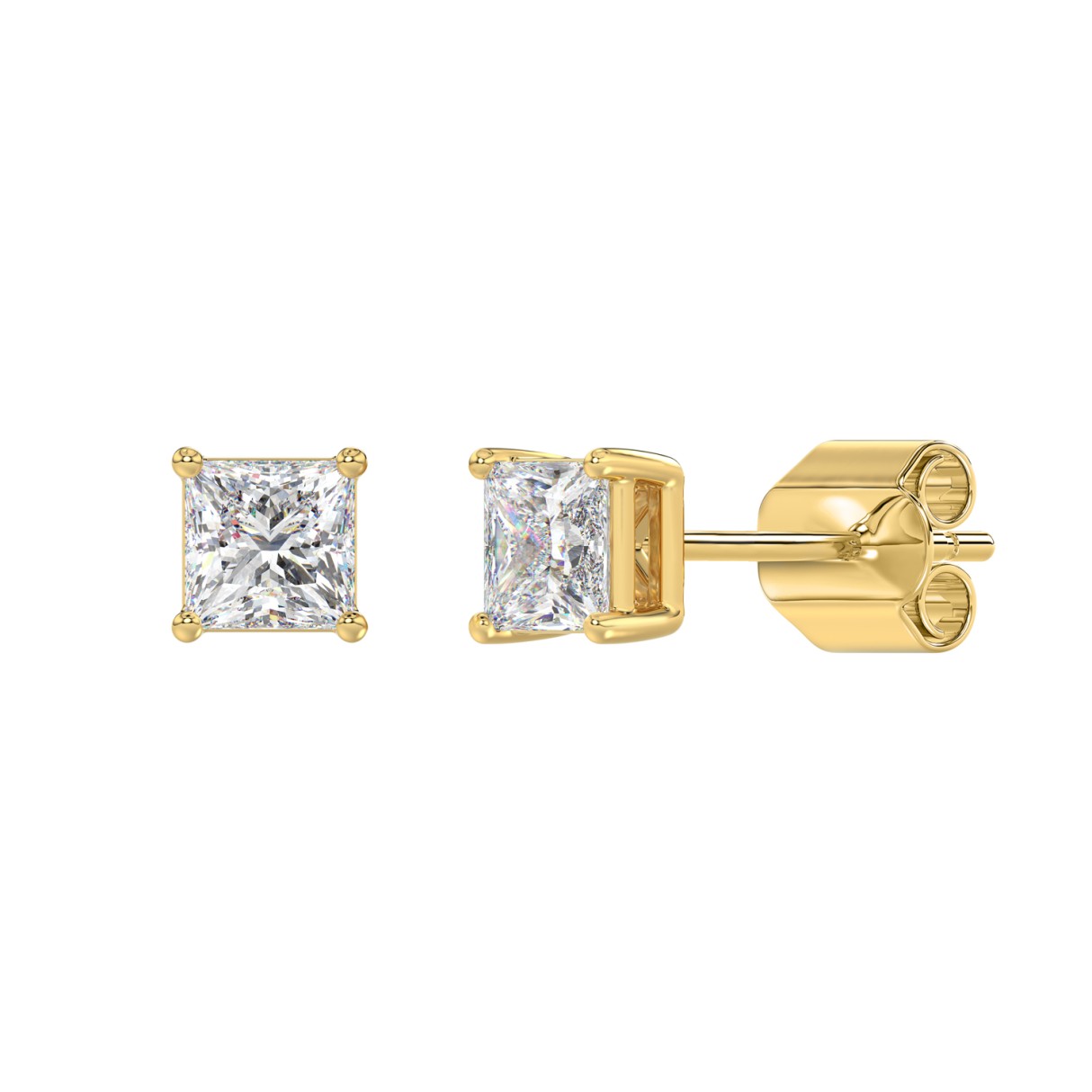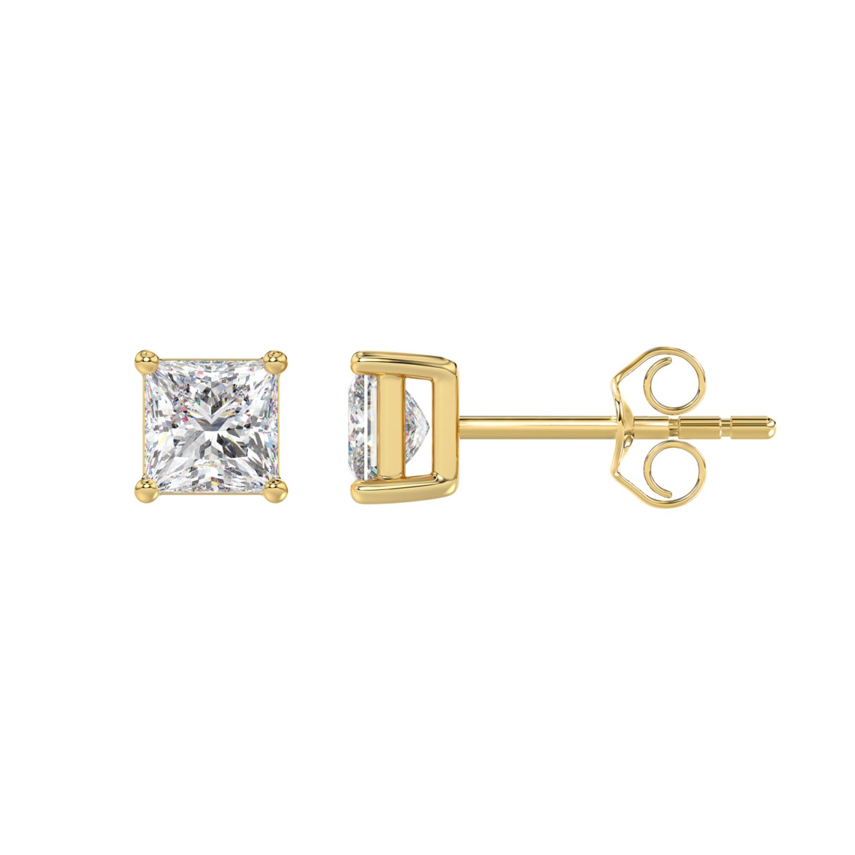 LADIES SOLITAIRE EARRINGS 1 1/2CT PRINCESS DIAMOND 14K YELLOW GOLD (CENTER STONE PRINCESS DIAMOND 3/4CT)