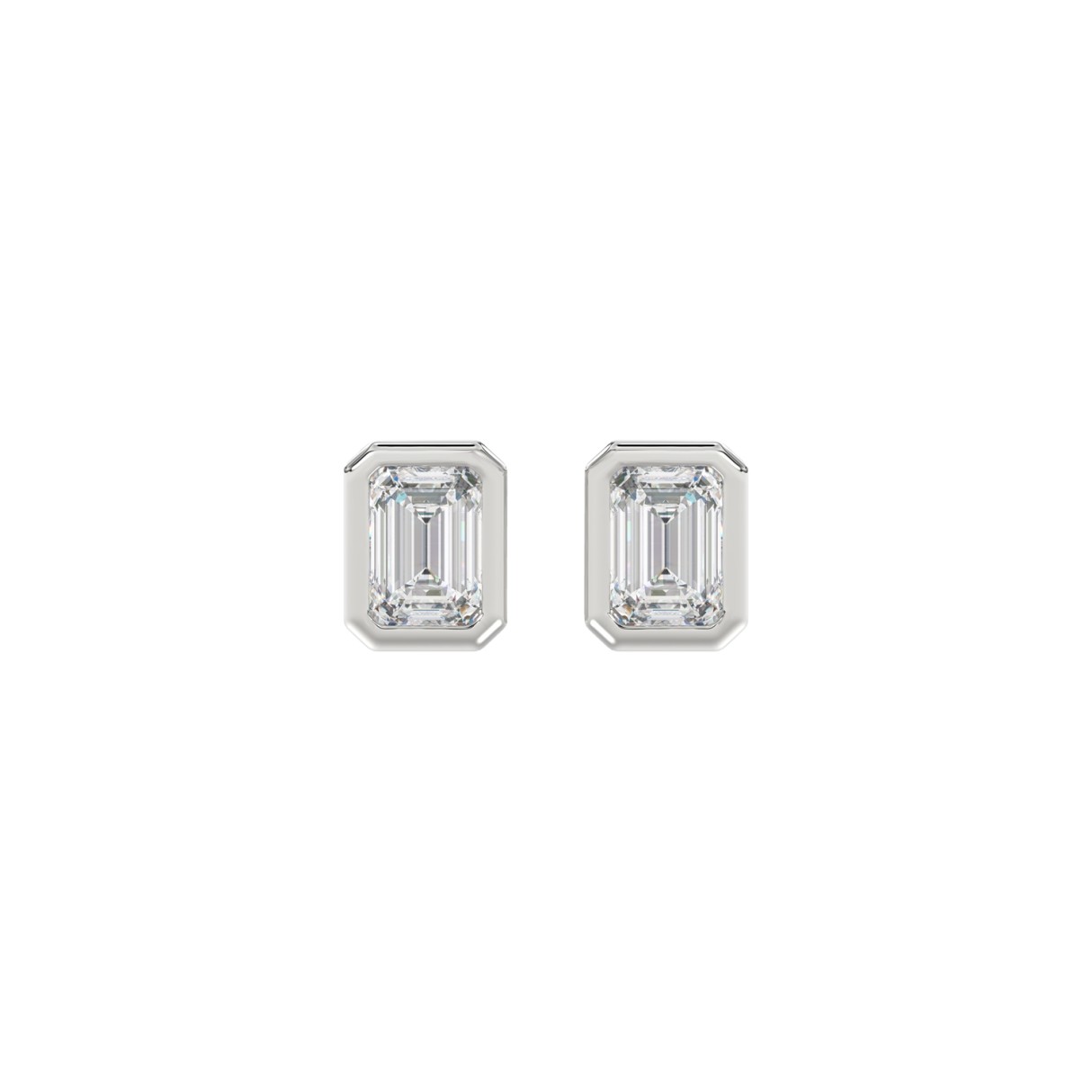 LADIES SOLITAIRE EARRINGS 1CT EMERALD DIAMOND 14K WHITE GOLD