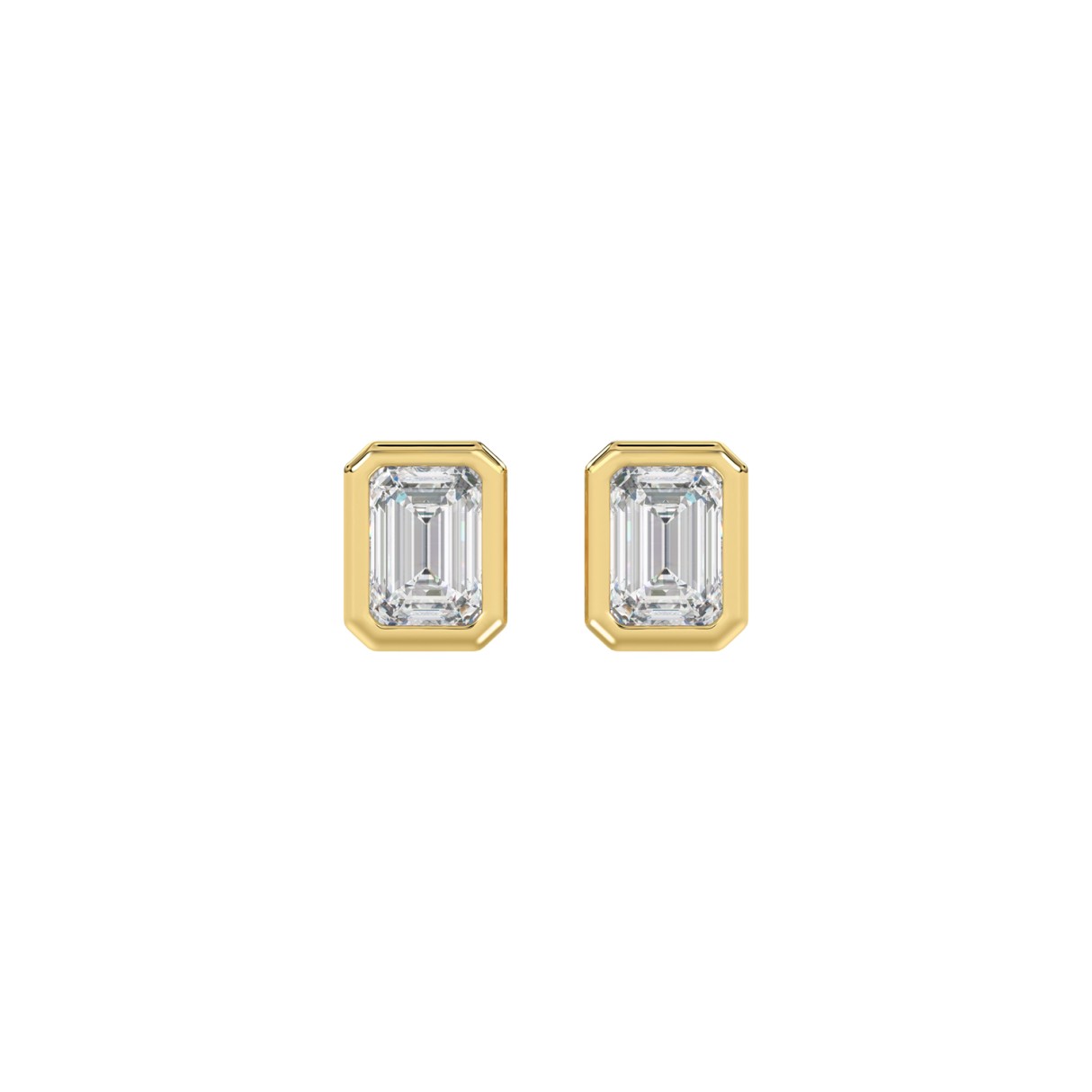 LADIES SOLITAIRE EARRINGS 1CT EMERALD DIAMOND 14K YELLOW GOLD