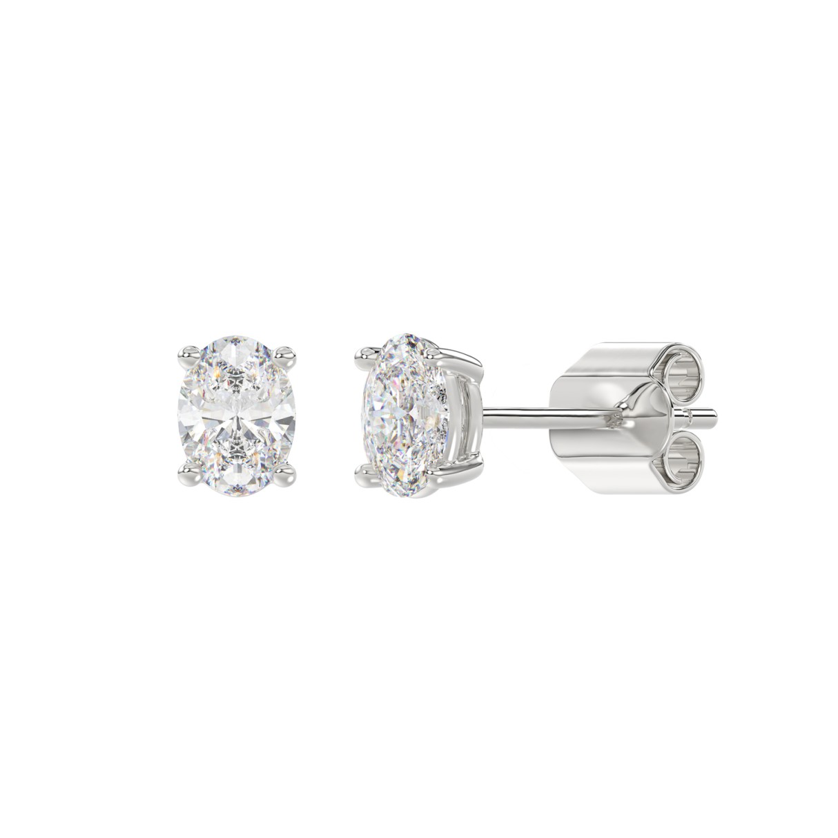 LADIES SOLITAIRE EARRINGS 1CT OVAL DIAMOND 14K WHITE GOLD