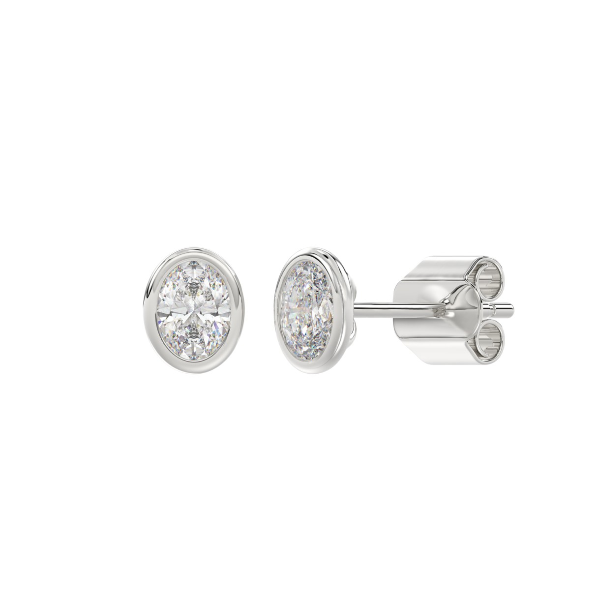 LADIES SOLITAIRE EARRINGS 1CT OVAL DIAMOND 14K WHITE GOLD