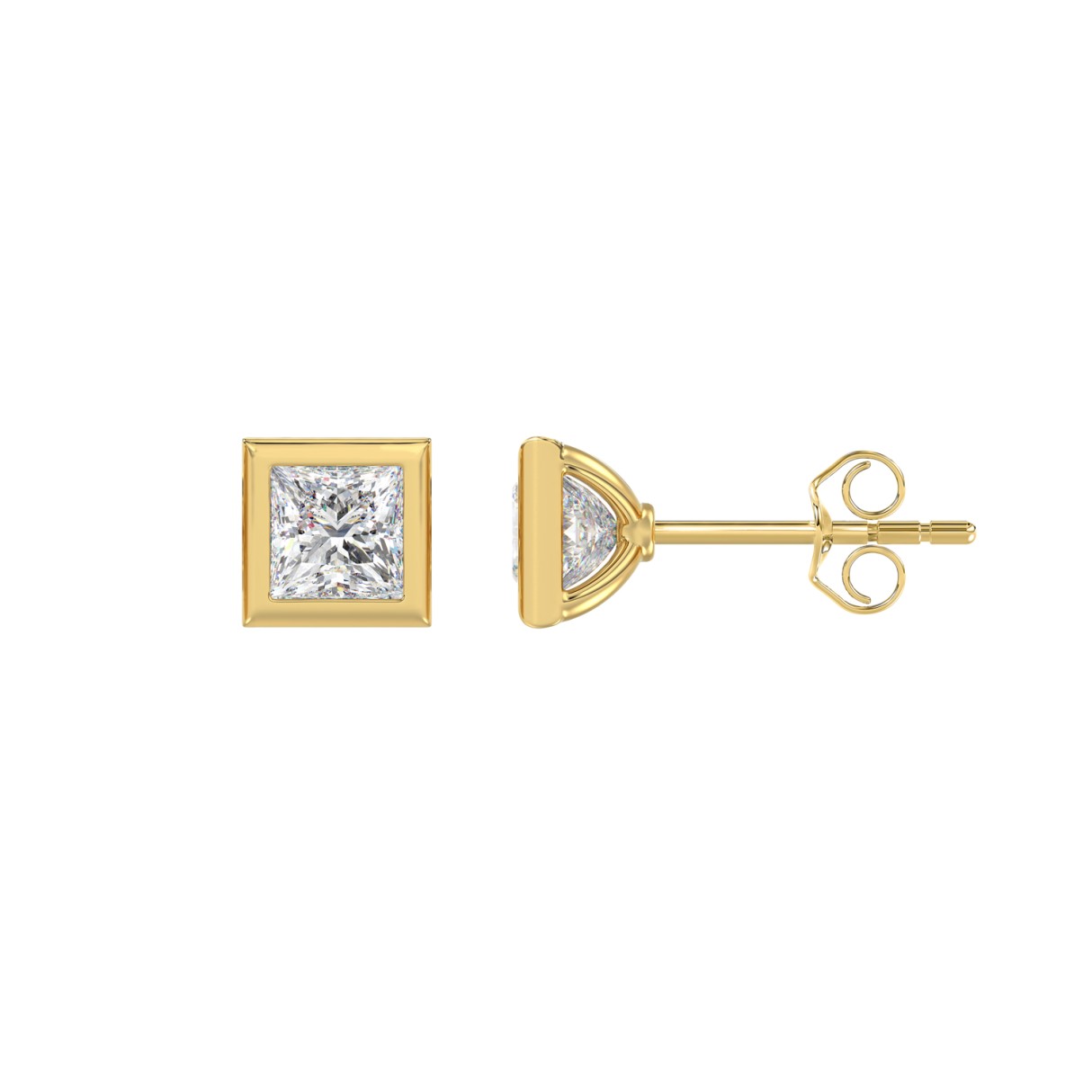 LADIES SOLITAIRE EARRINGS 1CT PRINCESS DIAMOND 14K YELLOW GOLD