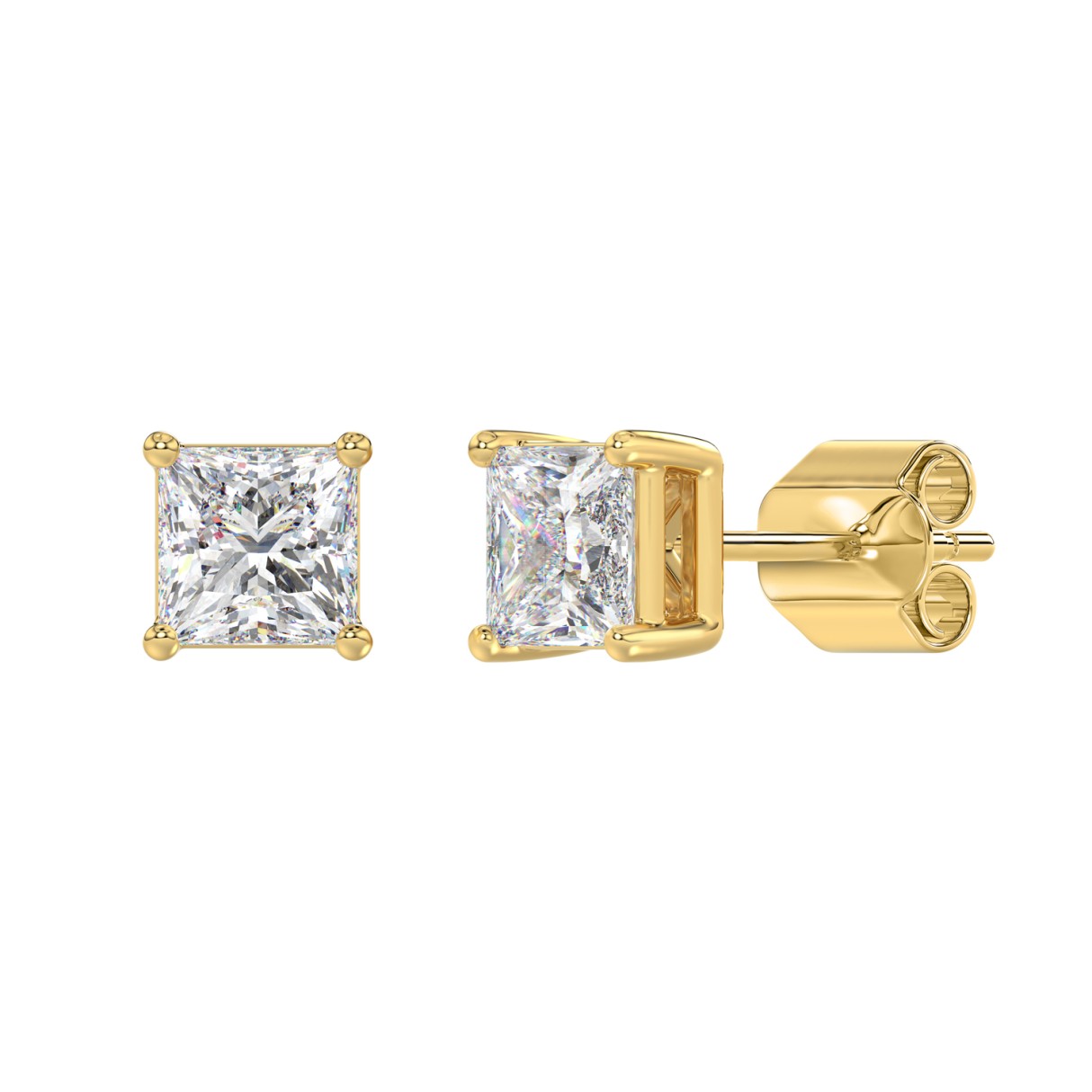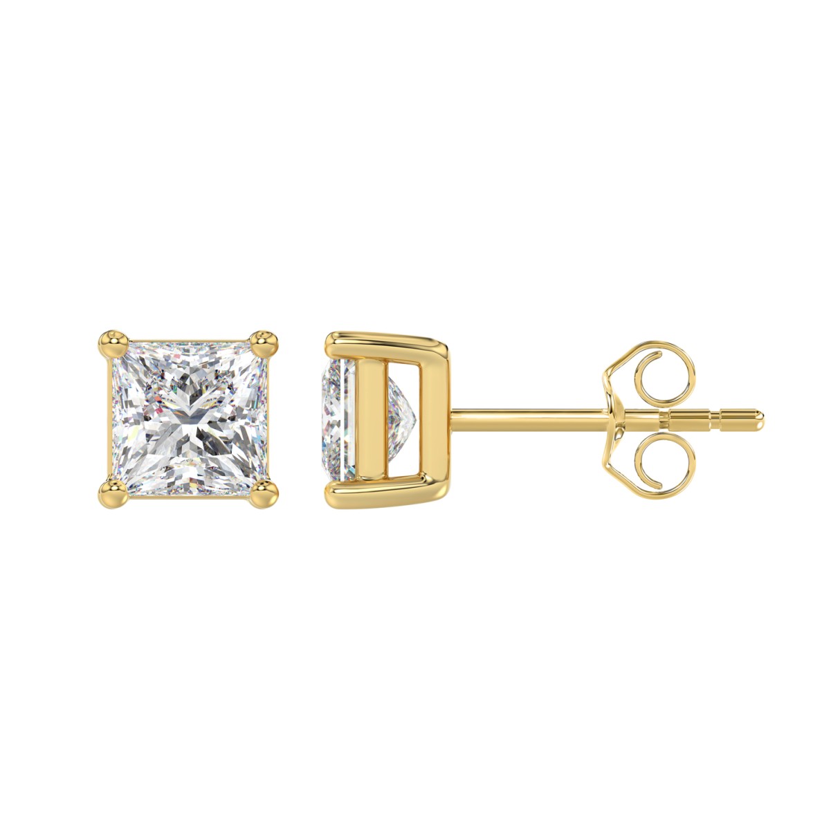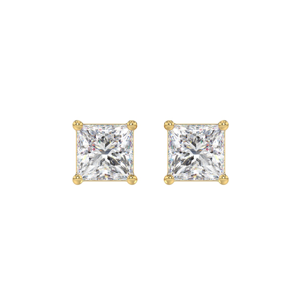 LADIES SOLITAIRE EARRINGS 2 1/2CT PRINCESS DIAMOND 14K YELLOW GOLD