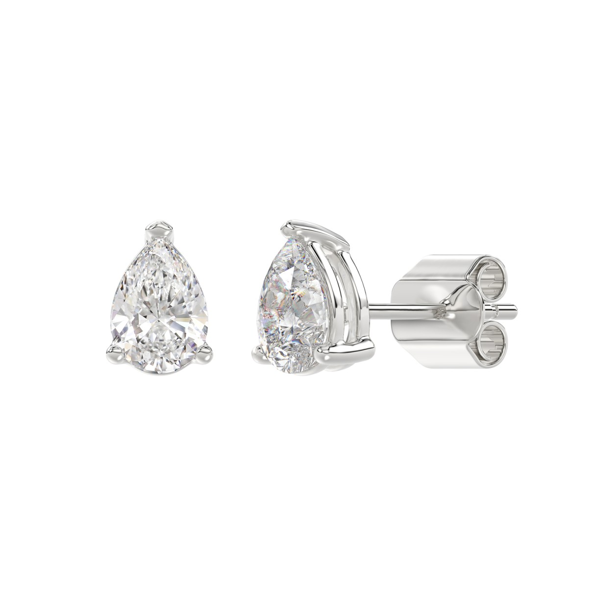 LADIES SOLITAIRE EARRINGS 2CT PEAR DIAMOND 14K WHITE GOLD