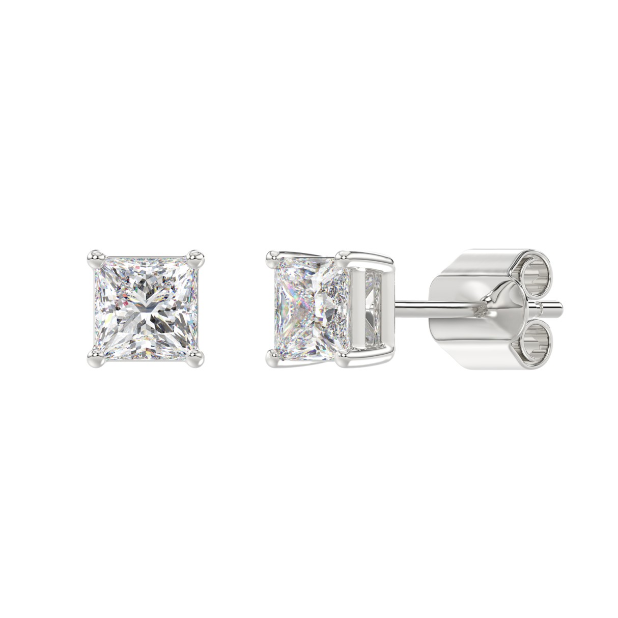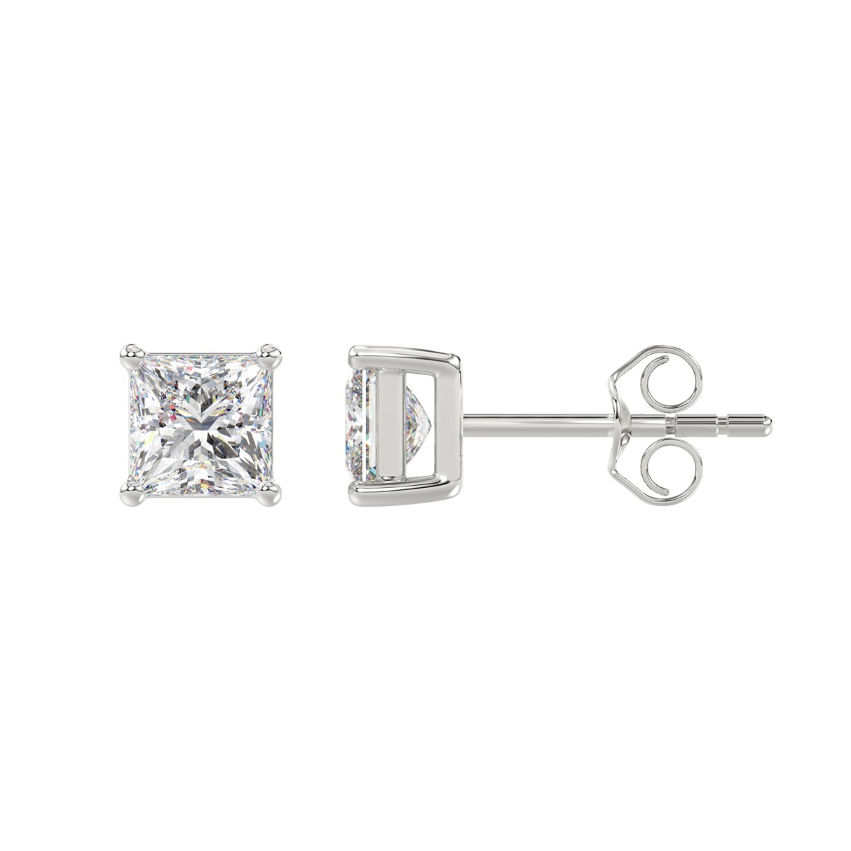 LADIES SOLITAIRE EARRINGS 2CT PRINCESS DIAMOND 14K WHITE GOLD