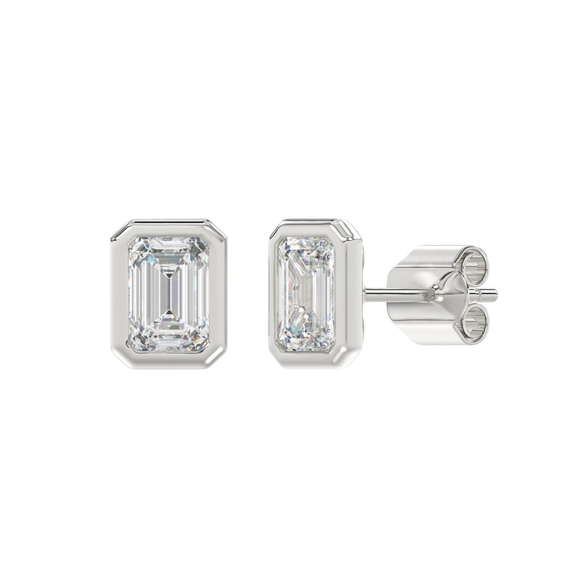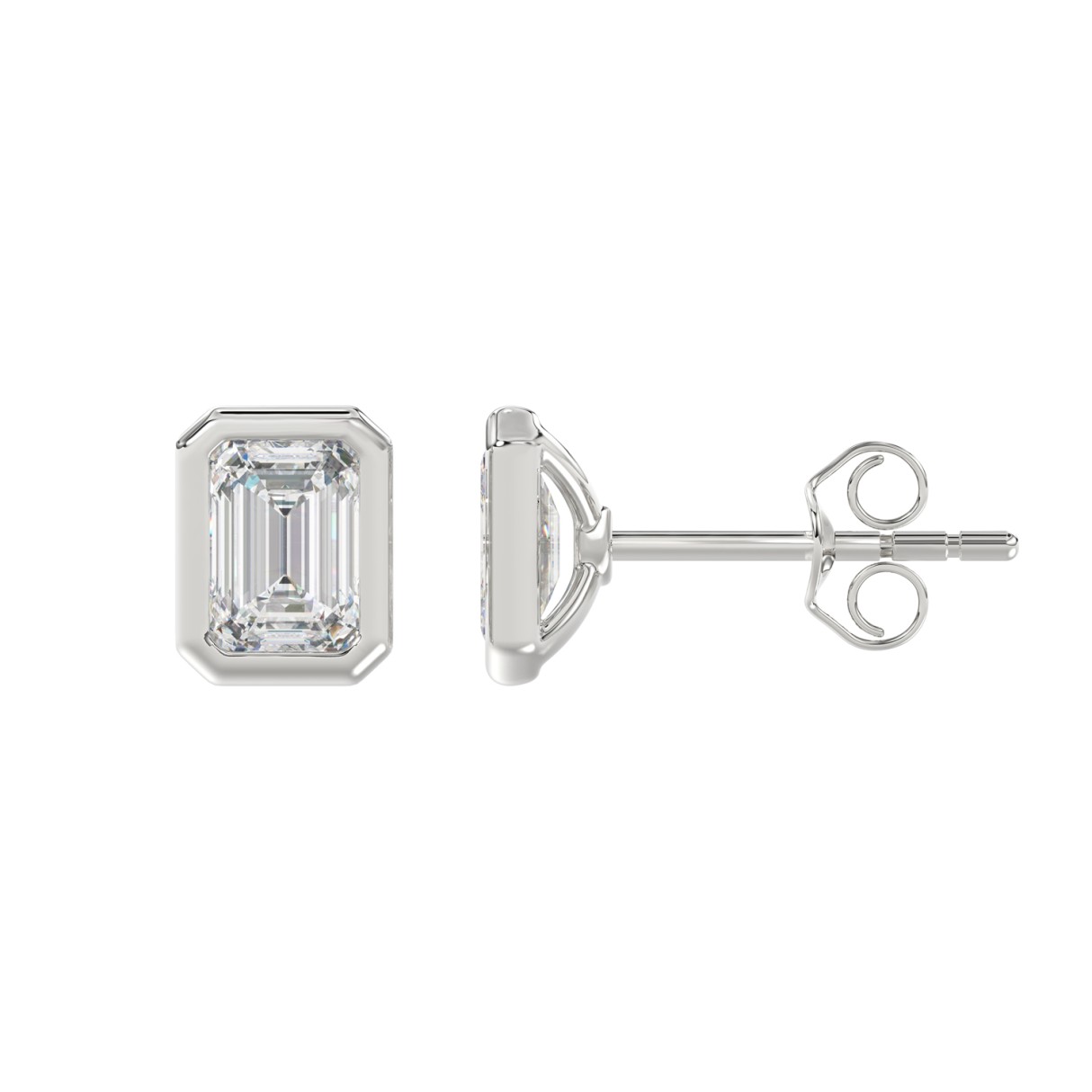 LADIES SOLITAIRE EARRINGS 3CT EMERALD DIAMOND 14K WHITE GOLD