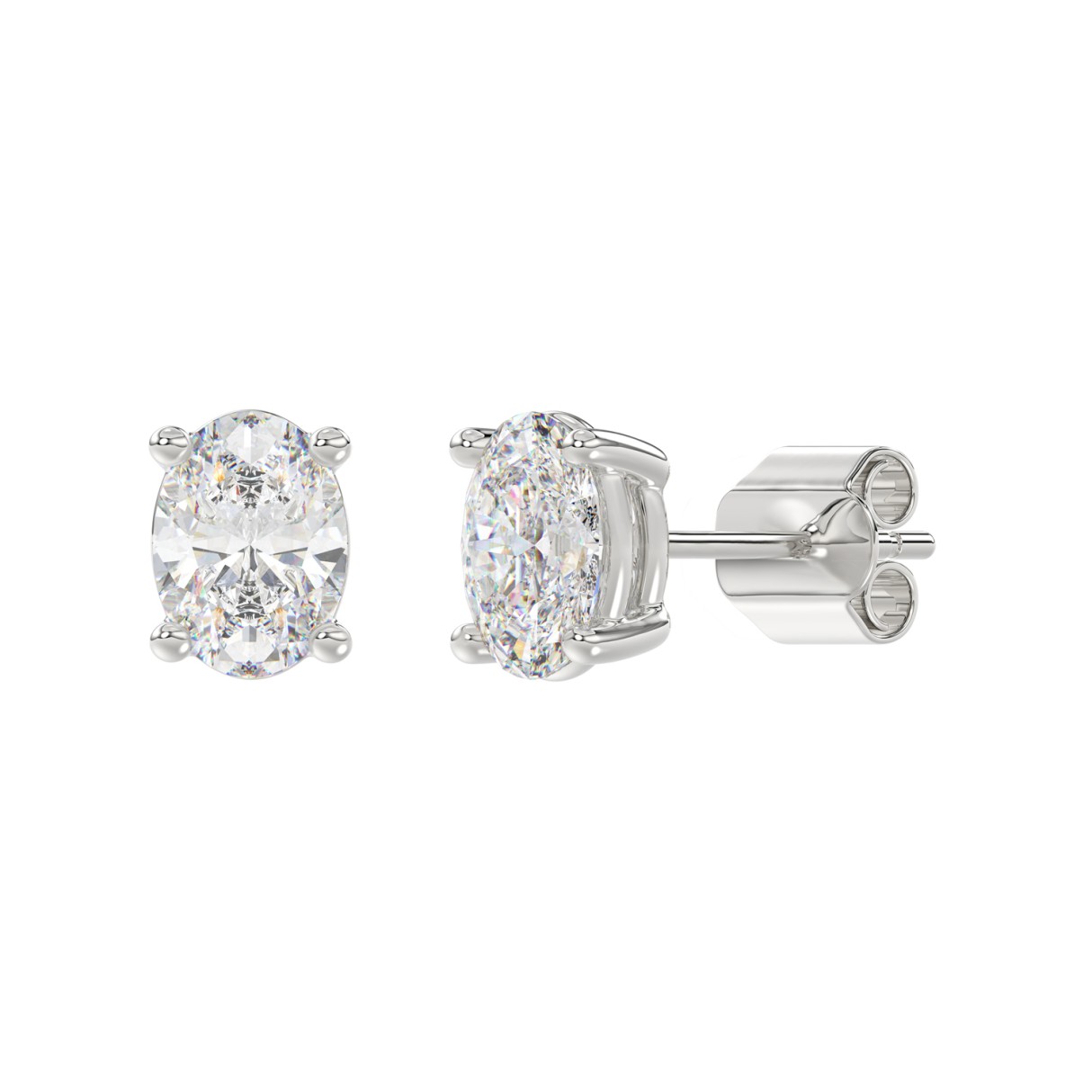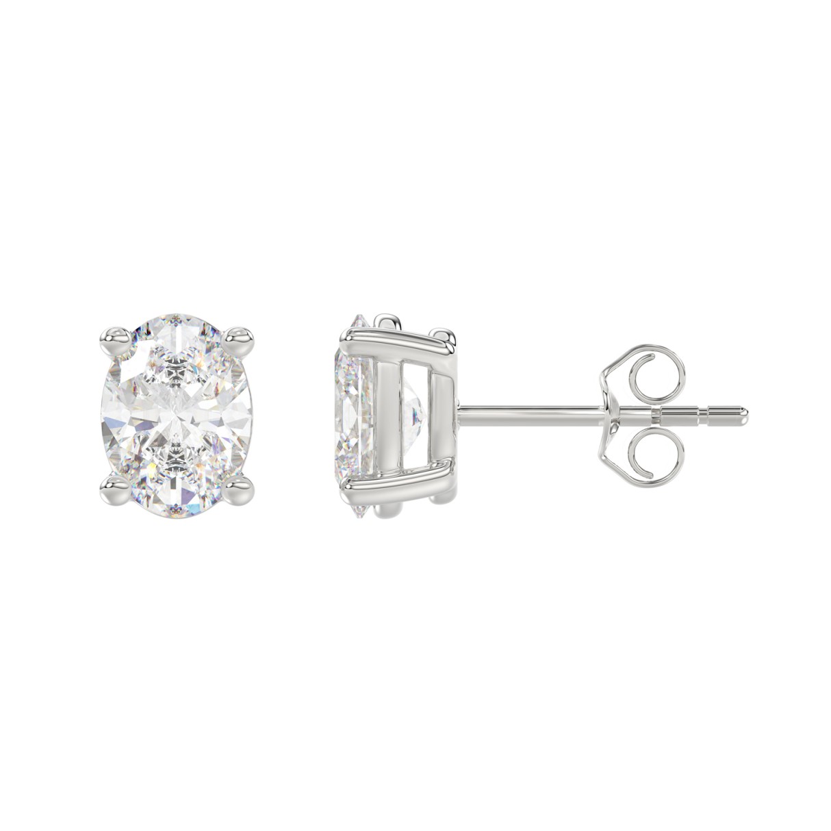 LADIES SOLITAIRE EARRINGS 3CT OVAL DIAMOND 14K WHITE GOLD (CENTER STONE OVAL DIAMOND 1 1/2CT )