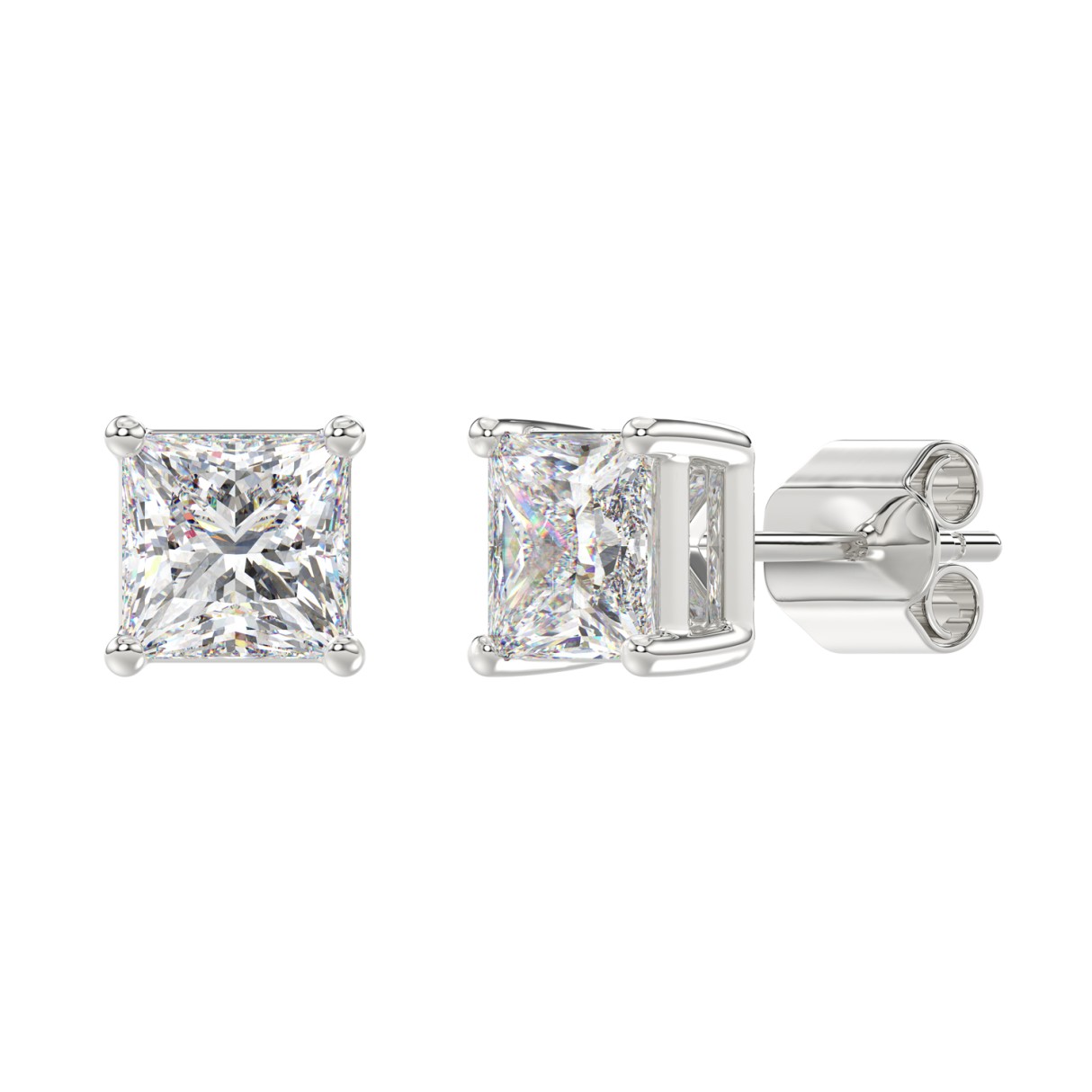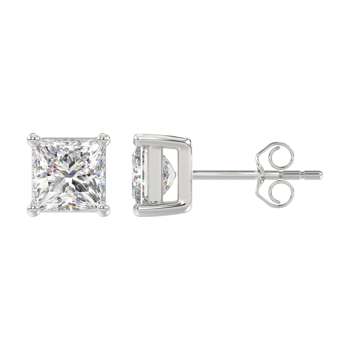 LADIES SOLITAIRE EARRINGS 4CT PRINCESS DIAMOND 14K WHITE GOLD
