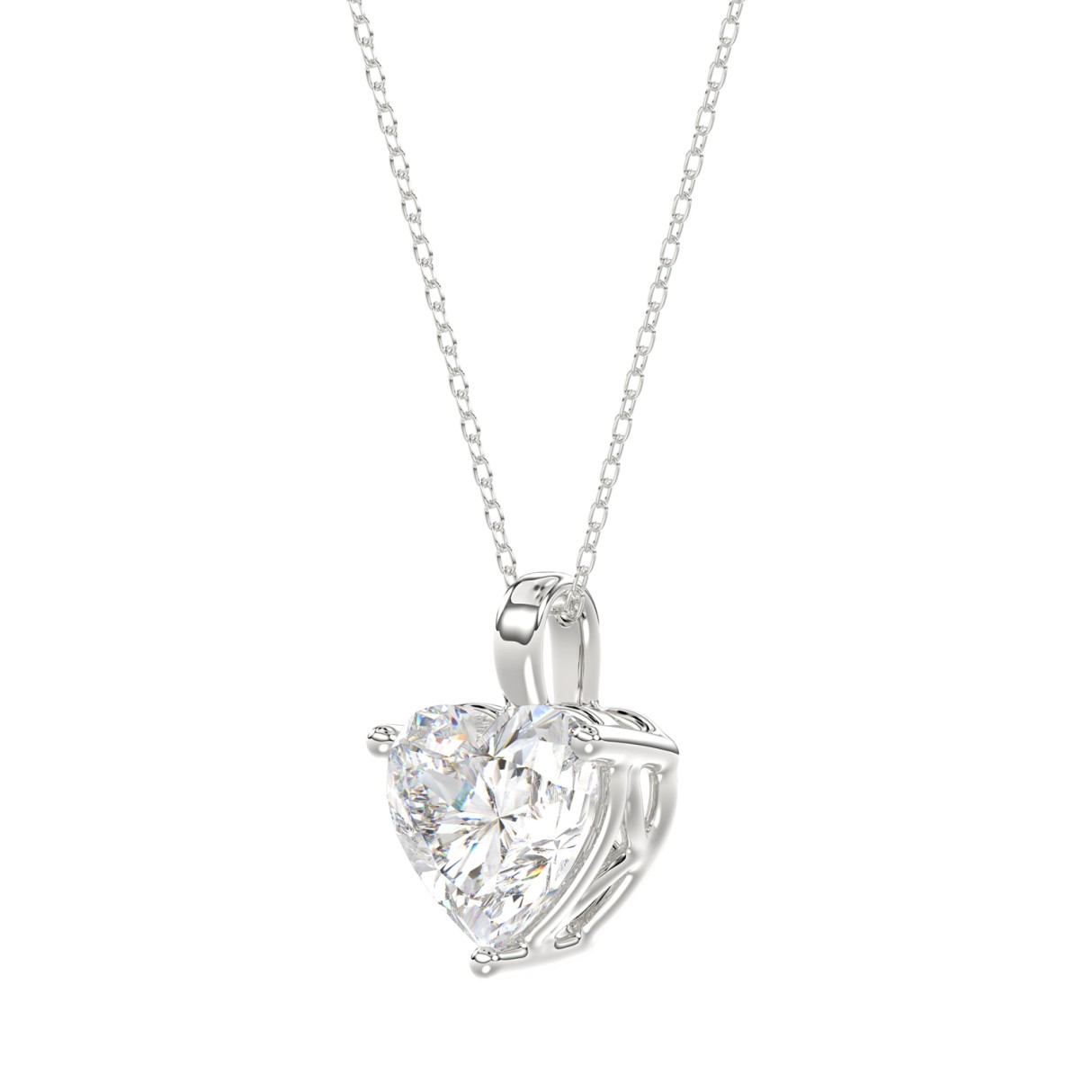 LADIES SOLITAIRE PENDANT WITH CHAIN 2CT HEART DIAMOND 14K WHITE GOLD