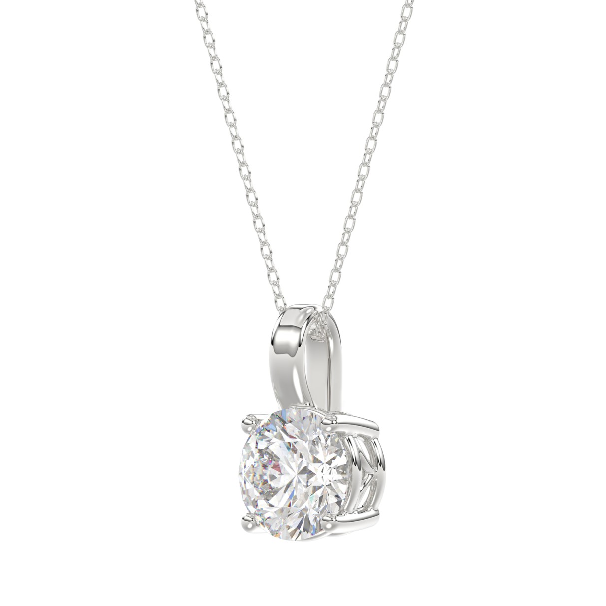 LADIES SOLITAIRE PENDANT WITH CHAIN 2CT ROUND DIAMOND 14K WHITE GOLD