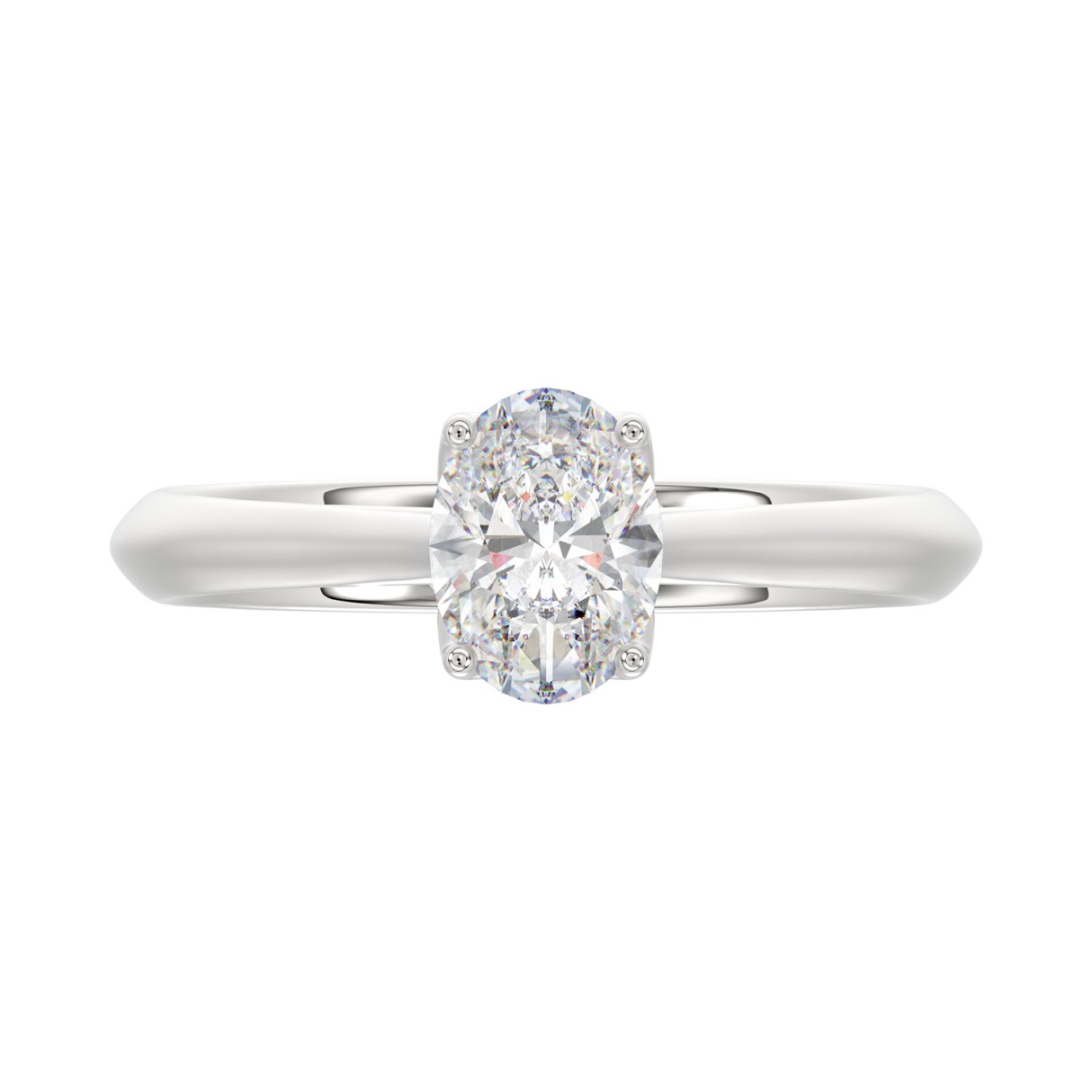 LADIES SOLITAIRE RING 1CT OVAL DIAMOND 14K WHITE GOLD