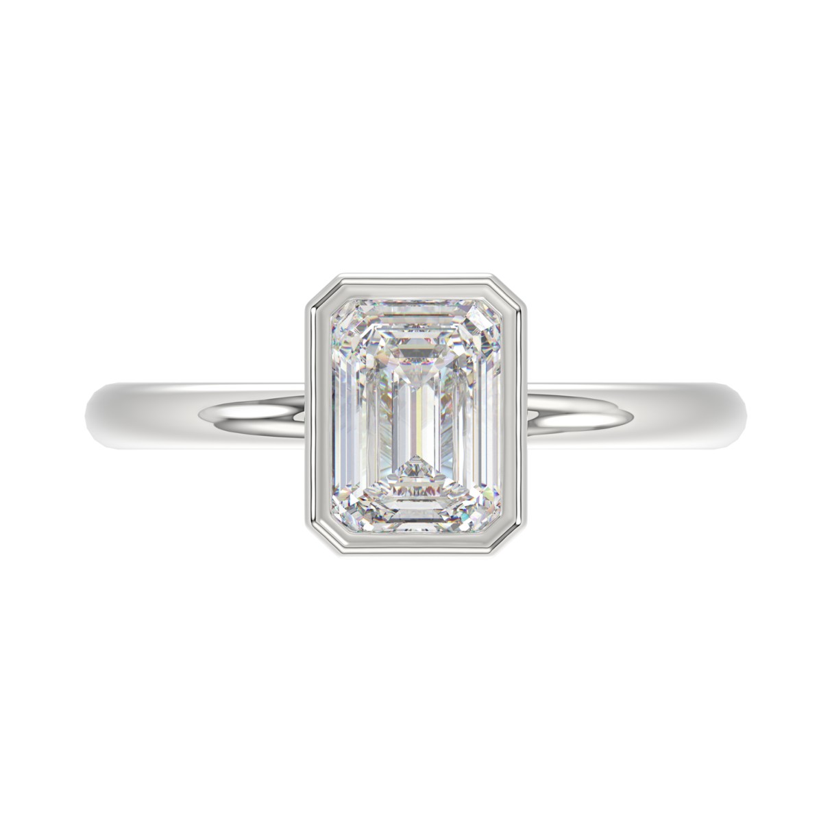LADIES SOLITAIRE RING 2CT EMERALD DIAMOND 14K WHITE GOLD (CENTER STONE EMERALD DIAMOND 2CT )