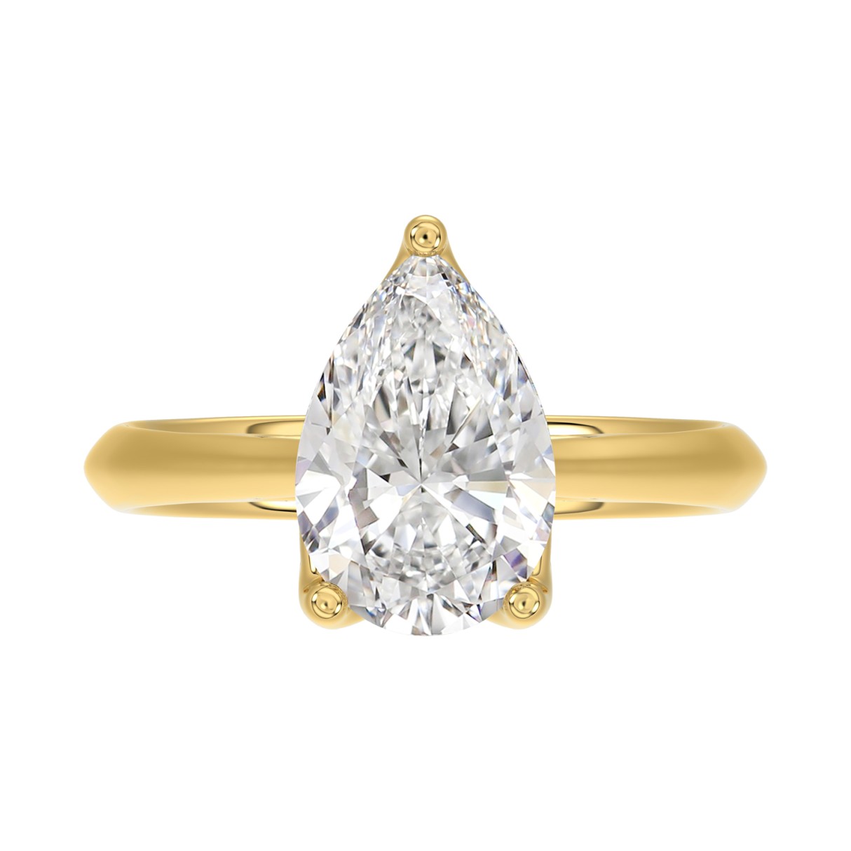 LADIES SOLITAIRE RING 3CT PEAR DIAMOND 14K YELLOW GOLD