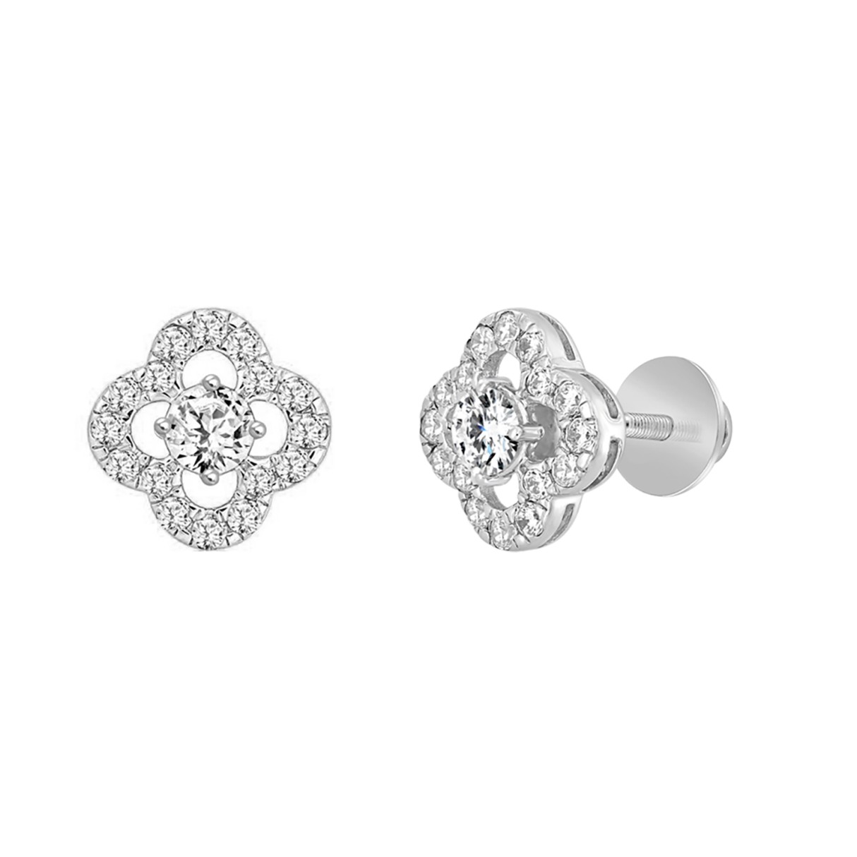 LADIES STUD EARRINGS 1CT ROUND DIAMOND 14K WHITE GOLD