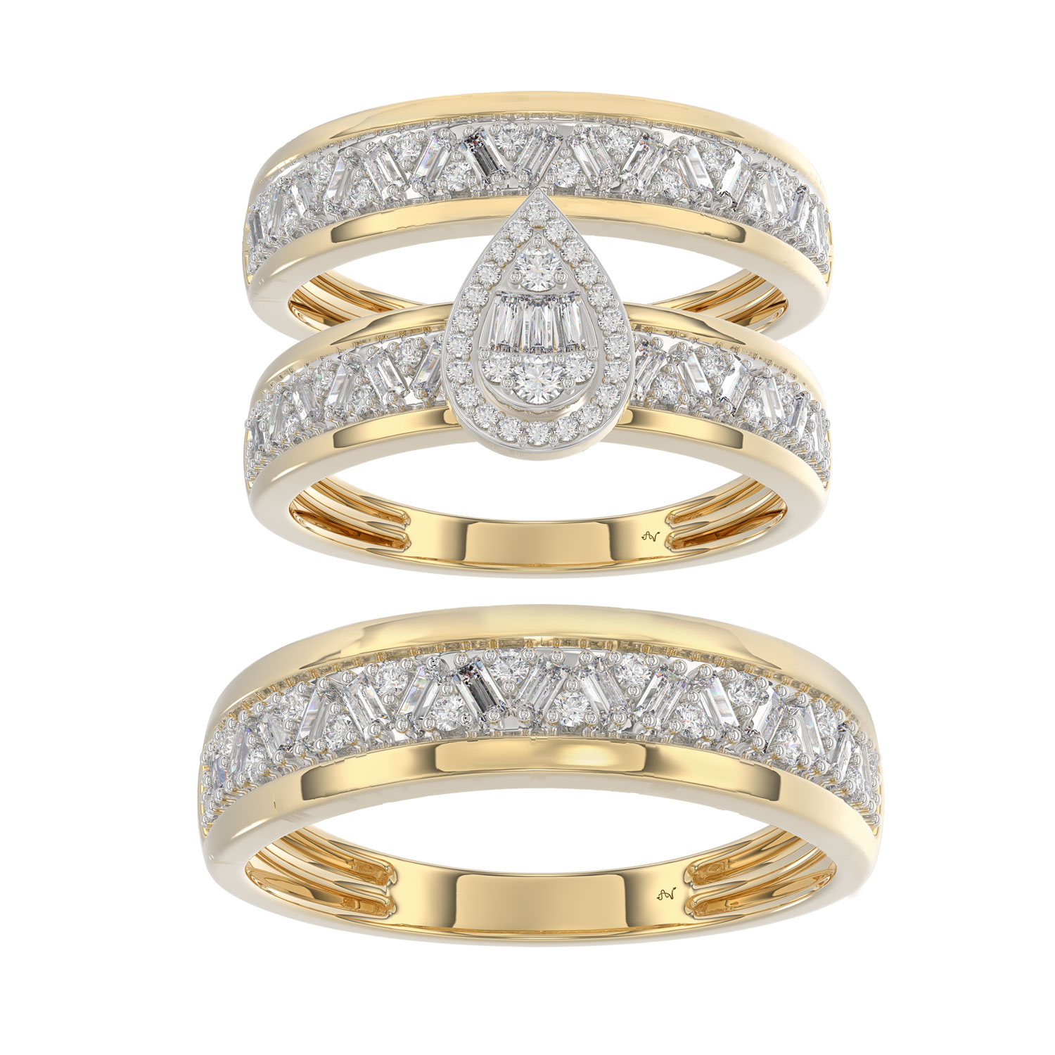 LADIES TRIO SET 1.00CT ROUND/BAGUETTE DIAMOND 10K YELLOW GOLD