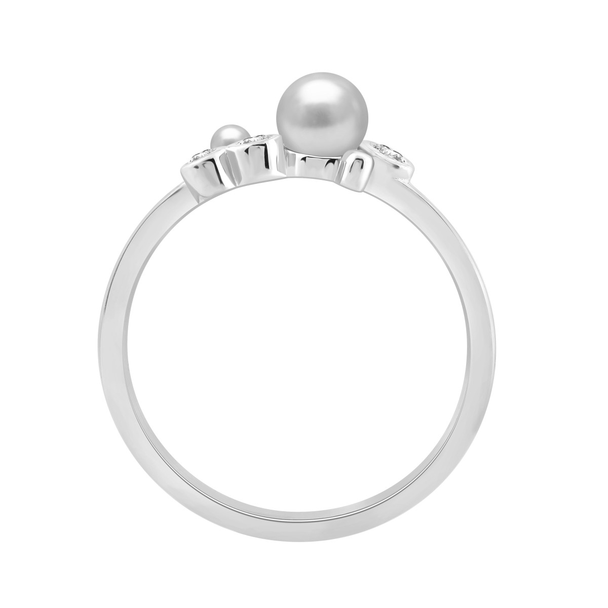 Sterling Silver 0.10Ct Round Diamond & White Pearl Cluster Ring Elegant Ladies Fashion & Engagement Ring