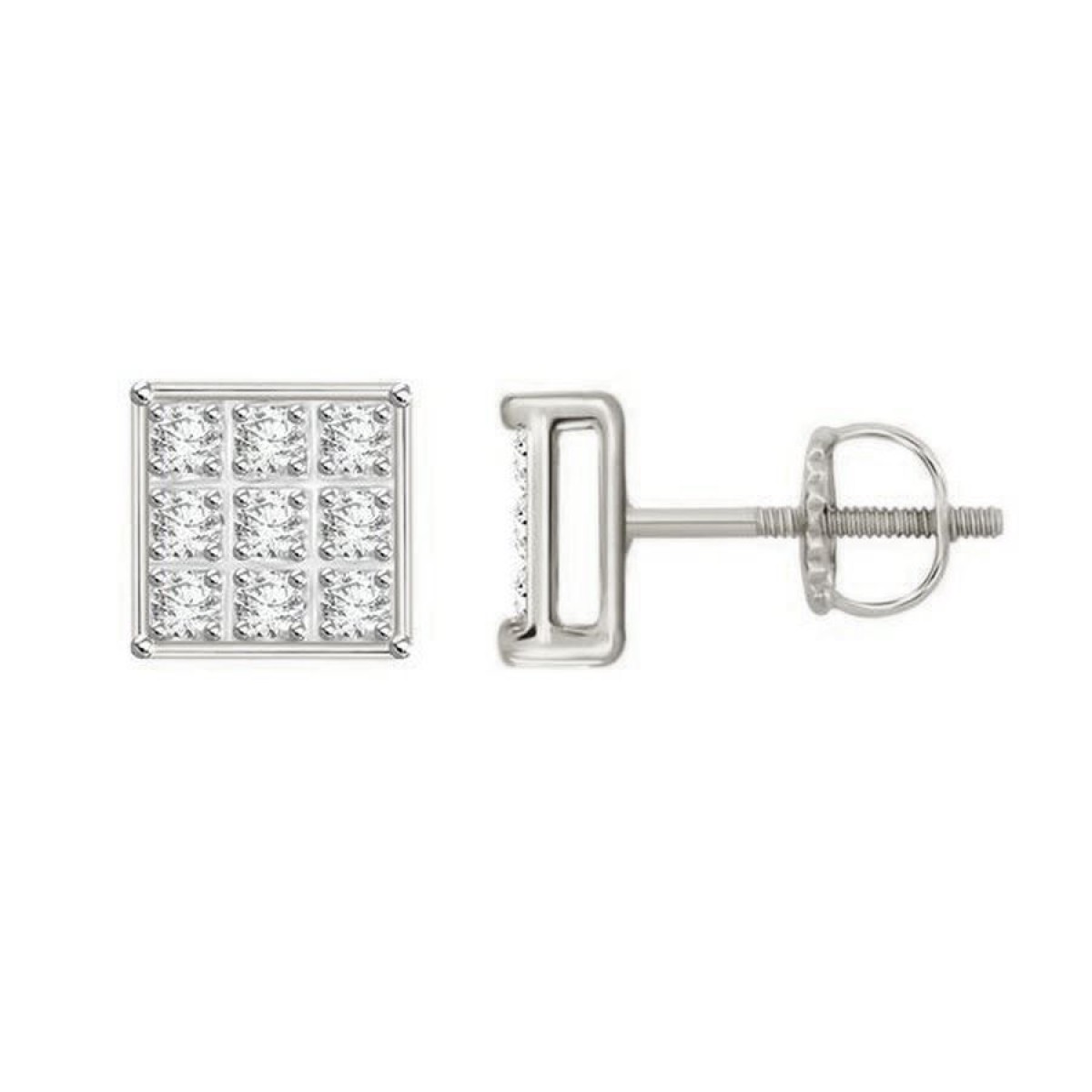 Sterling Silver White 0.05CT Round Diamond Yuva Square Cluster Earrings Women’S Fine Jewelry