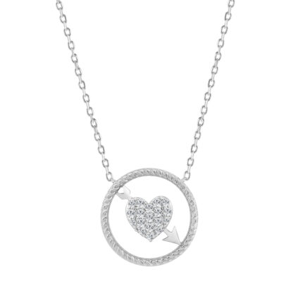 10K WHITE GOLD LADIES HEART AND ARROW PENDANT 0.15CT ROUND NATURAL DIAMOND, WITH CHAIN