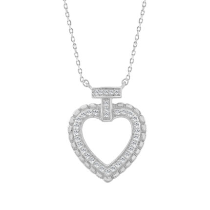 Elegance Ladies Heart Shape Fashion Pendant With Chain 0.15Ct Round Diamond Sterling Silver White
