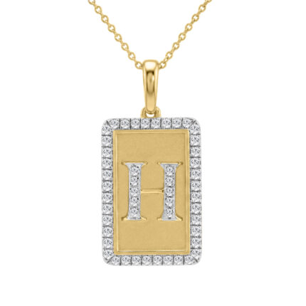 10K Yellow Gold letter ‘H’ Fashion Pendant With Chain – 0.20 CT Round Diamond Ladies Jewelry Gift