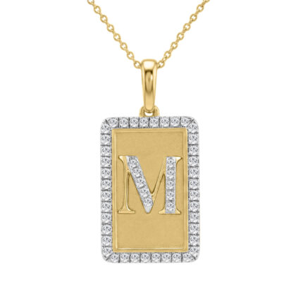 10K Yellow Gold letter ‘M’ Fashion Pendant With Chain – 0.20 CT Round Diamond Ladies Jewelry Gift
