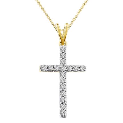 LADIES CROSS PENDANT WITH CHAIN 0.25CT ROUND DIAMOND 14K YELLOW GOLD