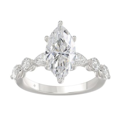 14K White Gold Bridal Fashion Ring for Ladies 4CT Round & Marquise& Pear Cut Diamonds 3.00CT Marquise Center stone (Color F-G -Clarity VS1/VS