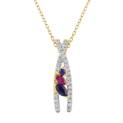 LADIES PENDANT WITH CHAIN 0.62CT ROUND/BLUE SAPPHIRE/RUBY DIAMOND DIAMOND 14K YELLOW GOLD (CENTER STONE MARQUISE/ROUND DIAMOND 0.50CT)