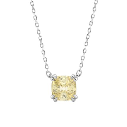 14K WHITE GOLD 1.00CT CUSHION YELLOW DIAMOND LADIES PENDANT