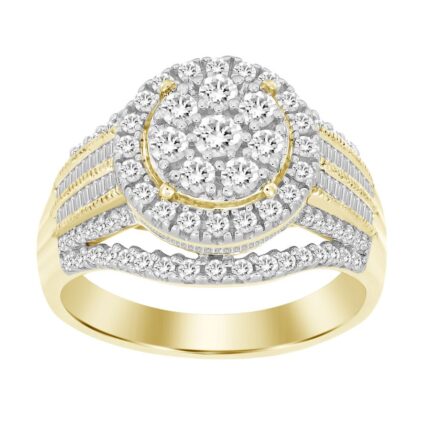 LADIES FASHION RING 1.00CT ROUND/BAGUETTE DIAMOND 10K YELLOW GOLD
