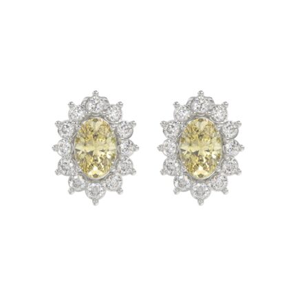 14K WHITE GOLD CRAFTED WITH 18K YELLOW GOLD BACK PLATE 1 1/2CT ROUND/YELLOW OVAL DIAMOND LADIES EARRINGS