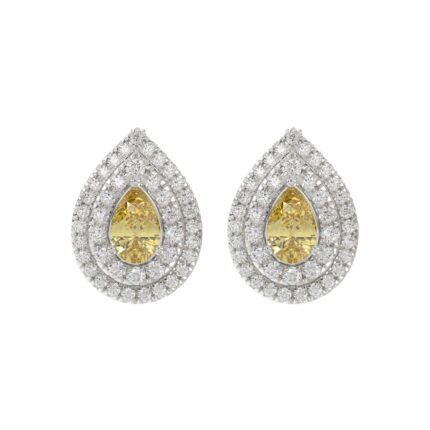 14K WHITE GOLD CRAFTED WITH 18K YELLOW GOLD BACK PLATE 1 1/2CT ROUND/YELLOW PEAR DIAMOND LADIES EARRINGS