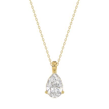 LADIES SOLITAIRE PENDANT WITH CHAIN 2CT PEAR DIAMOND 14K YELLOW GOLD